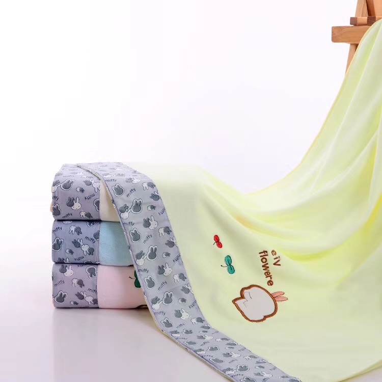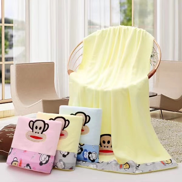 超细纤维绣花浴巾,花布包边卡通绣花,时尚大方,柔软舒适吸水性强。尺寸70x140cm,各种平方克重都有。