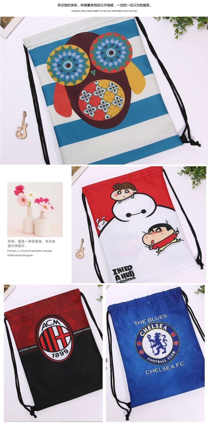 新款卡通涤纶双肩束口抽绳背包 防水抽绳袋束口背包 厂家订做 投诉