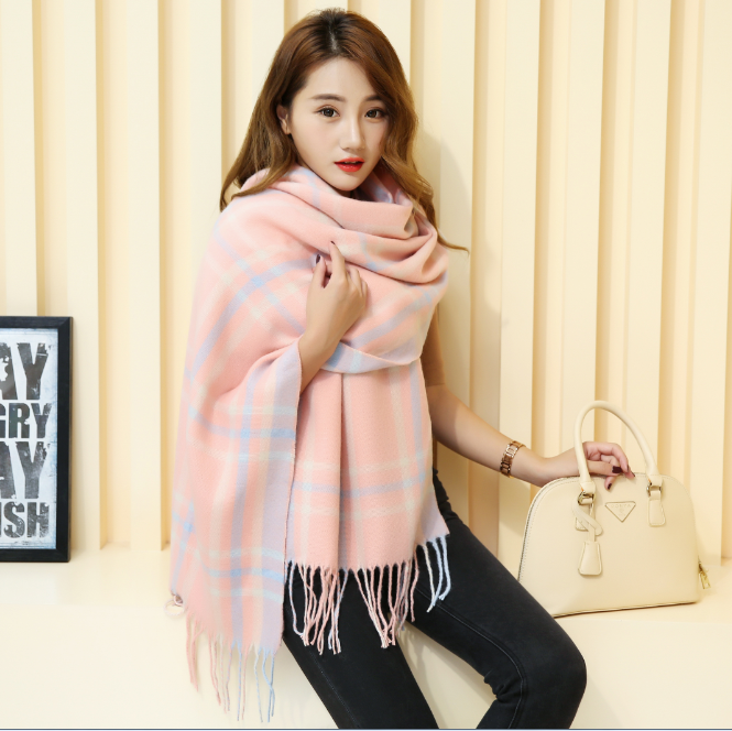 秋冬季男女毛线围巾加厚保暖格子围巾仿羊绒披肩情侣学生围脖韩版 English | 投诉