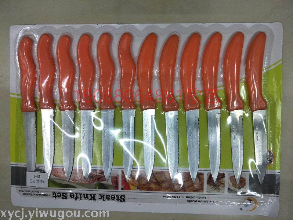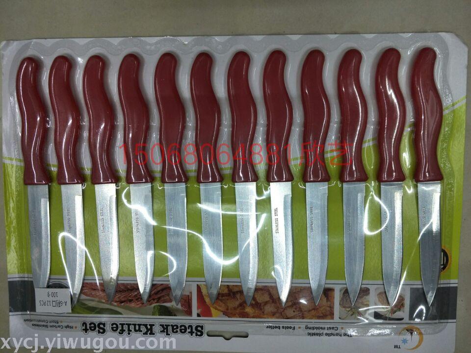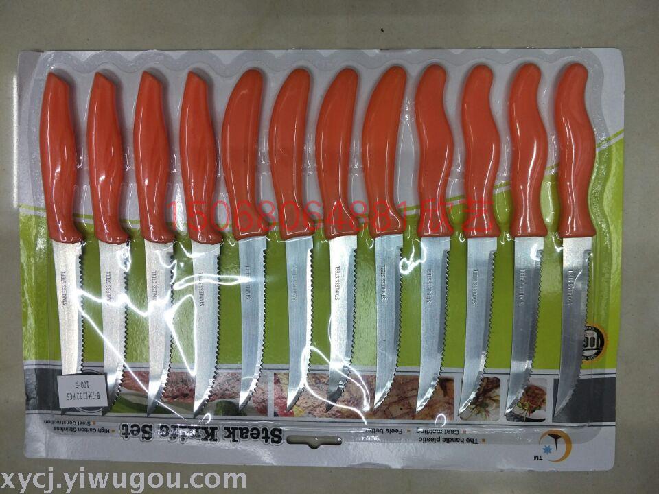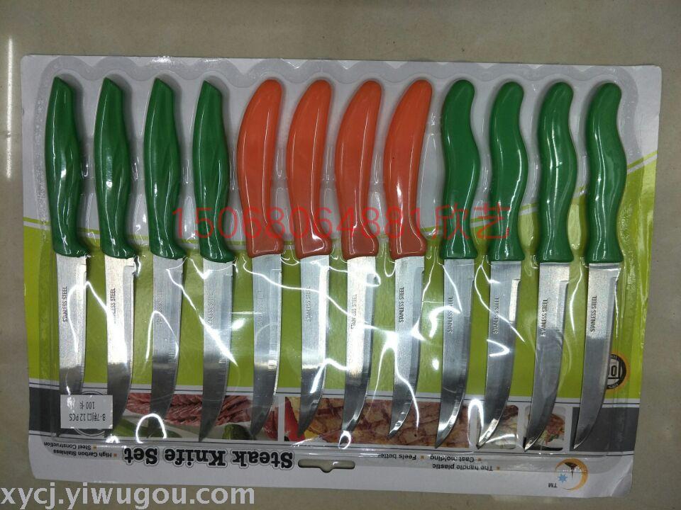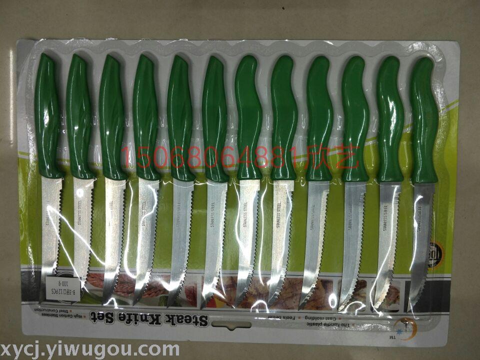 12PC利口刀牙刀锯齿刀水果刀削皮刀吸卡包装混色 投诉