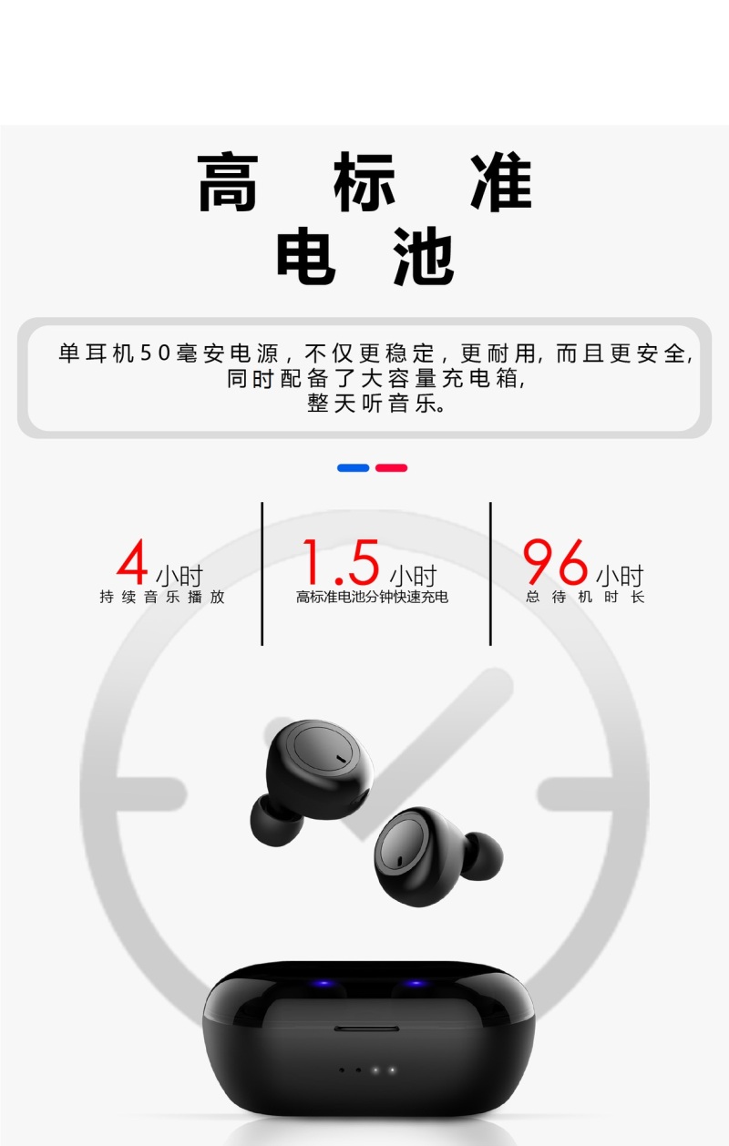 电池容量:耳塞40Mah*2,充电箱400Mah