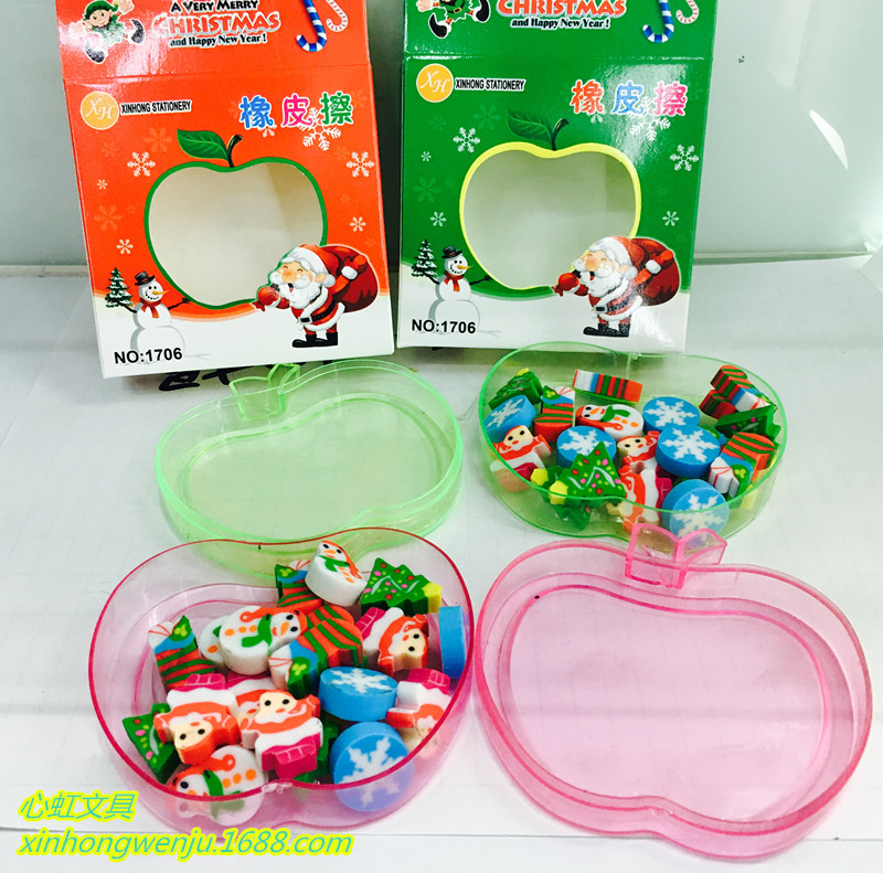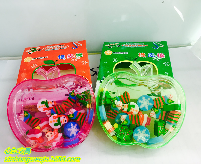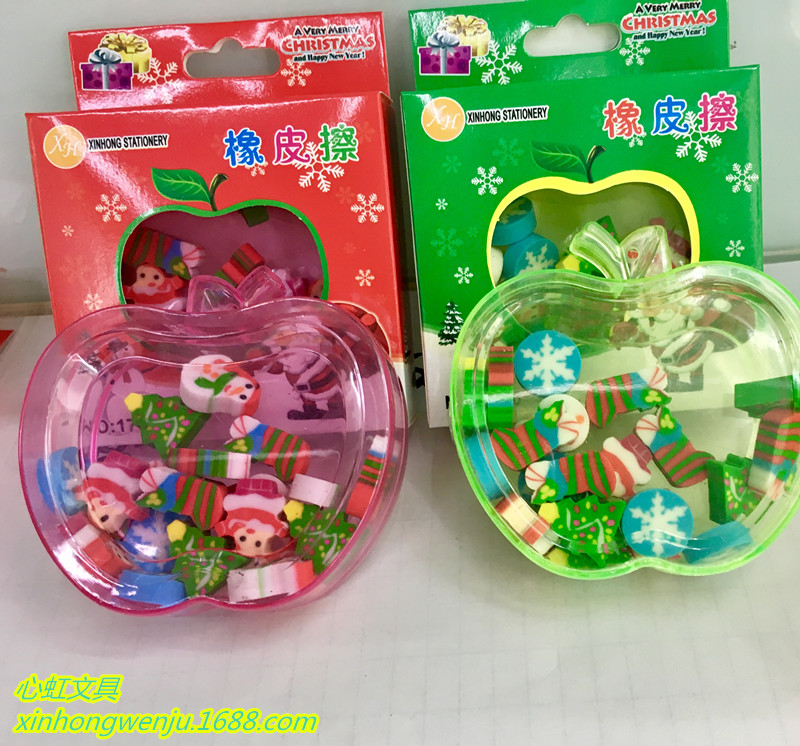 超可爱造型外盒,苹果造型多色随机发。可做文具也可做摆饰,增添节日气氛!一个苹果里面装满了约20个迷你的小橡皮,个个逼真可爱,是奖励给学生和孩子的礼品。保证个个爱不释手的哈。