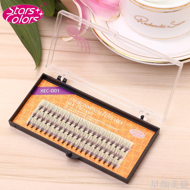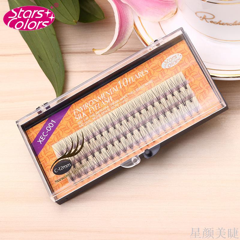 6、将蘸有胶水的假睫毛接在距根部0.5~1毫米处的睫毛外侧。