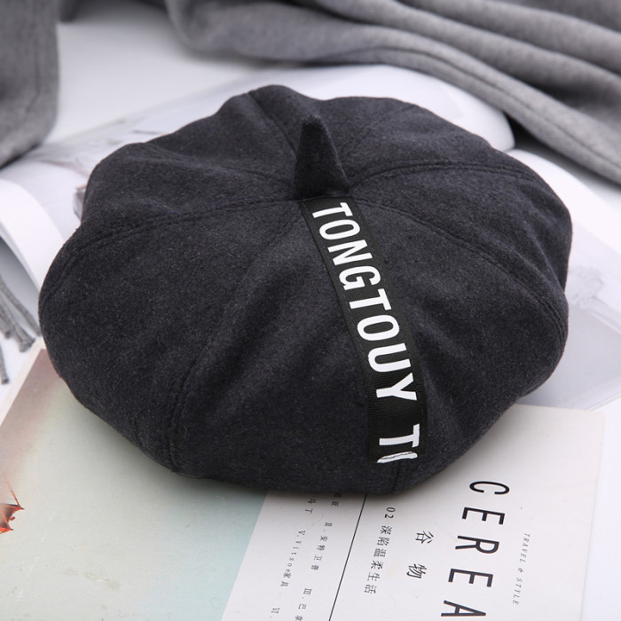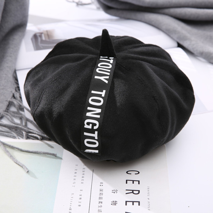 韩国秋冬季可爱百搭贝雷帽韩版女潮英伦蓓蕾画家帽子冬天黑色