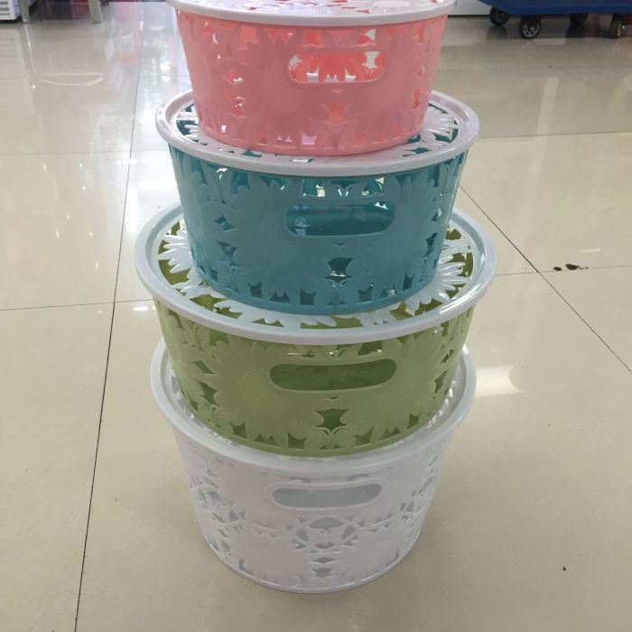 塑料带盖置物篮收纳篮菜篮太阳花圆形大小号BKS 投诉