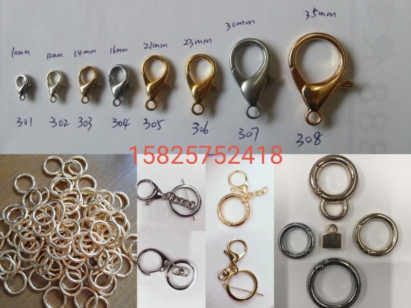 主营产品有龙虾扣,羊眼螺丝钉,马仔扣,爪钉,钻圈,水滴,尾链,弹簧,接发扣,铁圈,铁环,开口圈,半圈,异形圈,椭圆圈,钢丝圈,九字针,平底针,球针,磨尖针,耳钩,耳环,法国钩,耳针耳钉,杯针,碗针,大头针,烧焊针,插针,耳夹,耳堵耳塞,花托,喇叭花托,酒杯,花兰,花球,圆球,网球,铁丝球,手工球,杨梅球,毛毛球,S球,连接片,铁片,美人头,夹片,压点夹片,网片,铝片,合金圆片,砝码,吊钟,定位珠,定位管,铁帽,平帽,四叶帽,包扣,蛇头扣,珠链包扣, 瓜子扣,胸针,盘针,安全针,大别针,钥匙扣,C扣,D扣,钥匙圈,猪丹(胆)扣,一字扣,三角扣,铁珠,南瓜珠,方珠,铁链,珠链,铝链,十字链,单扣链,平压链,加密链,磨链,双支链,扁丝链,麻花链,网链,蝴蝶链,单双层链,玉米链,空心链,钻石链,威尼斯链,格子链,灯笼链,葫芦链,八字链,W链,方形链,馒头链,圆蛇链,BL链,NK链等多种产品,也可以来样定做,产品款式多,尺寸颜色多,价格优惠,质量保证。我行本着“比质量求生存、以信誉求发展”的诚实经营理念,欢迎新老客户前来洽谈选购!