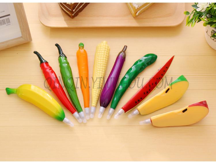 产品分别有:茄子、扁豆、玉米,青辣椒、红辣椒、白萝卜、胡萝卜、黄瓜、香蕉、草莓等高仿真农场笔。书写流畅,色泽鲜艳,造型新颖,深受国内外客商喜爱,欢迎有需要的新老客户前来定购,联系电话微信;15825793920。