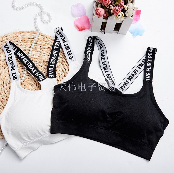 (高弹)英文背带裹胸 无缝运动内衣英文字母 英文带文胸