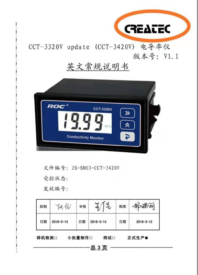 3320V电导率仪是一款面向低端市场的经济型智慧电导率仪表