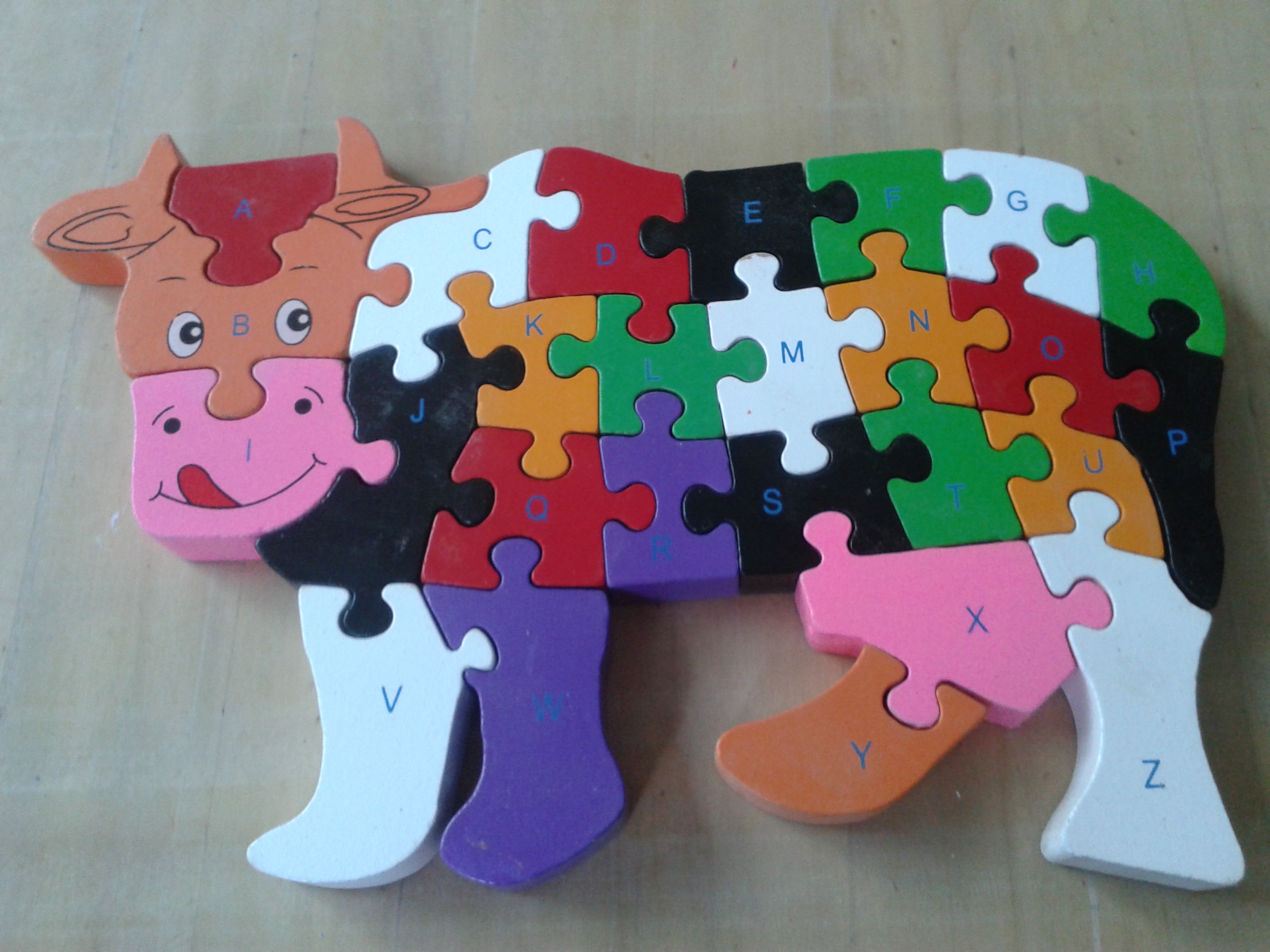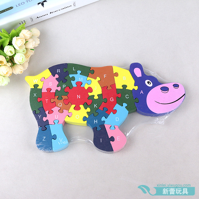木制3D动物立体拼图,一面数字一面字母可以给小孩玩中学习
