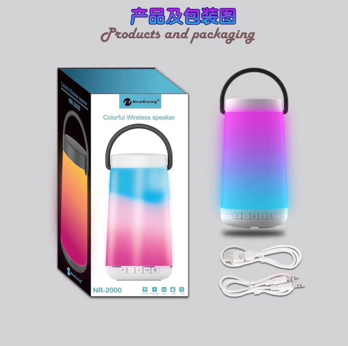 新款NR-2000带炫彩灯光蓝牙音箱手提户外便携式蓝牙音箱