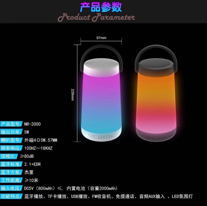 新款NR-2000带炫彩灯光蓝牙音箱手提户外便携式蓝牙音箱 投诉