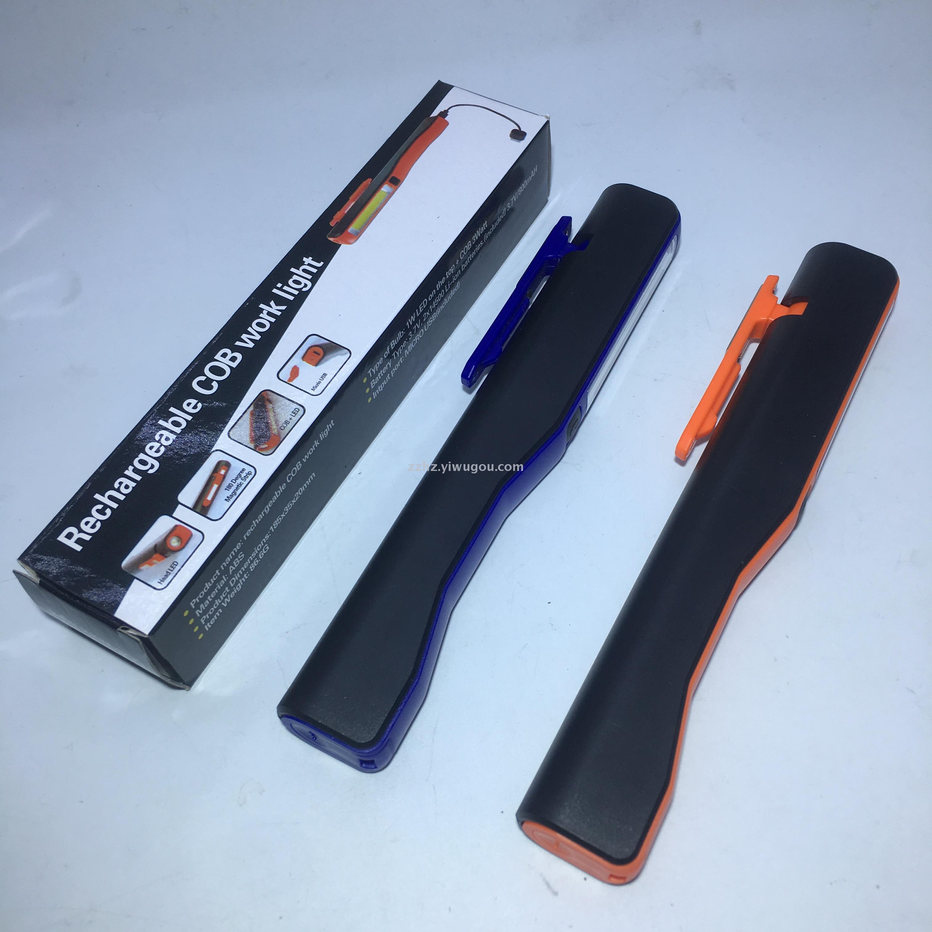 充电COB笔灯工作灯180度笔夹带磁铁尾部吸铁修剪笔形工具灯