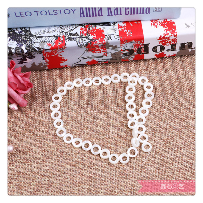 diy手工串珠饰品材料配件天然白色贝壳圆环圆形片珠子直孔