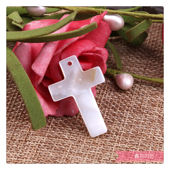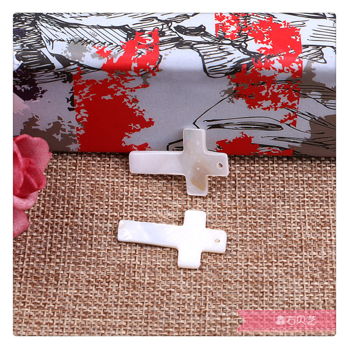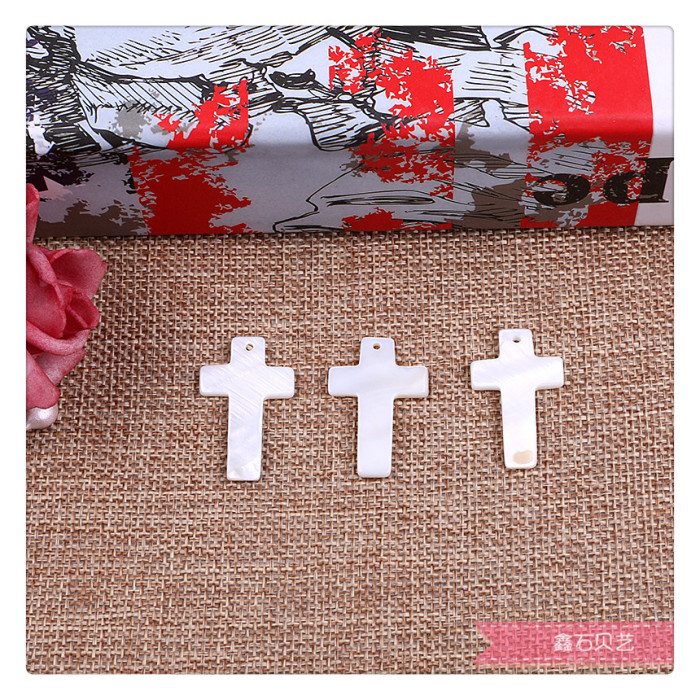 十字架天然贝壳半成品散珠串珠吊坠diy材料配件