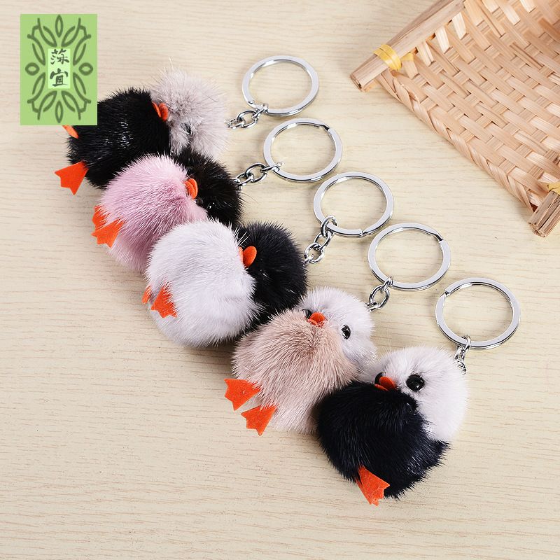 水貂毛绒挂件 迷你小鸡钥匙扣 毛绒饰品