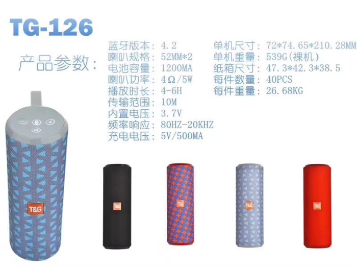 TG126蓝牙音箱便携式户外音箱低音炮收音插卡蓝牙音响礼品