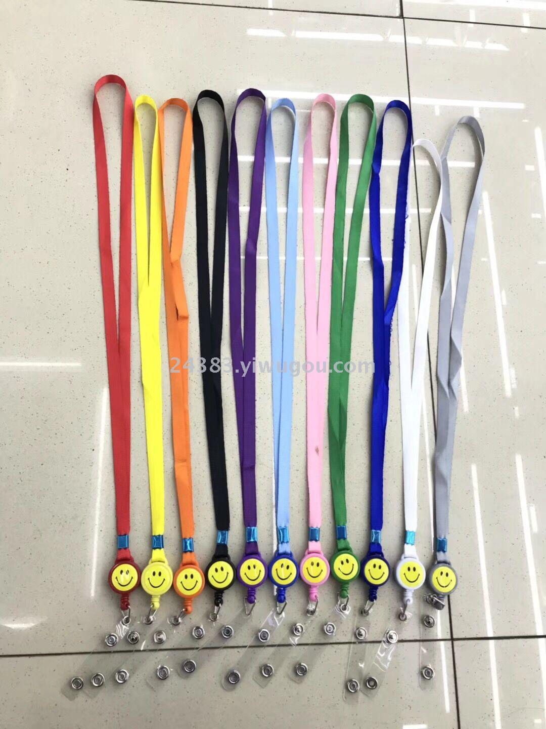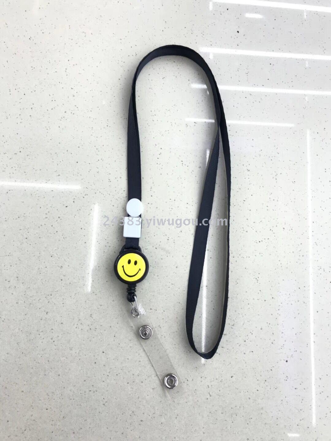 1.5cm收缩绳笑脸易拉扣挂绳 工作证签到卡胸牌证件挂绳