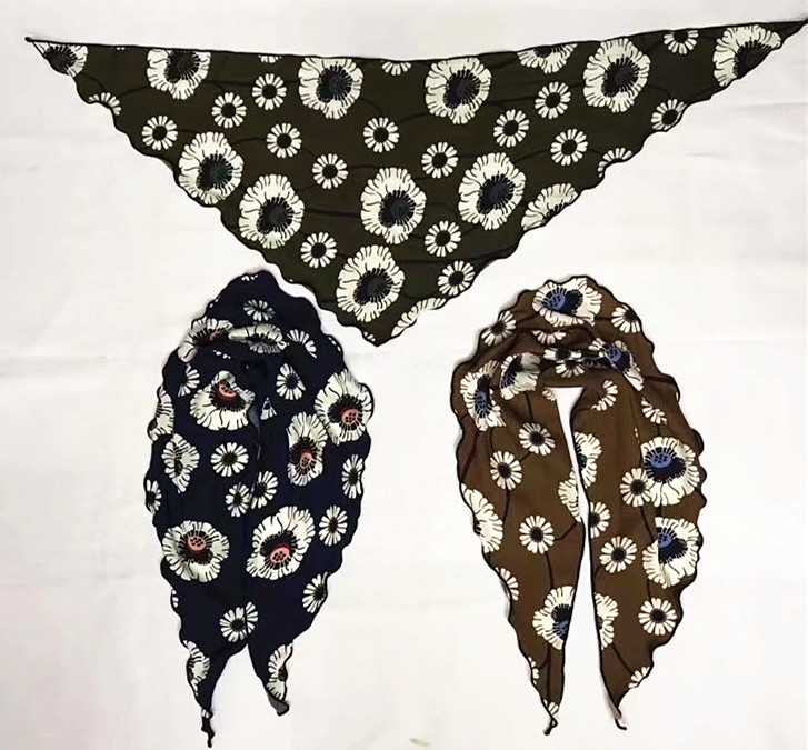TR棉麻圆圈波浪花边女士三角巾,2018春秋新款。接布料、花色、尺寸定制,量大从优,欢迎微信联系,或来店面谈~该围巾吸汗透气、易清洗、不易起毛球,时尚百搭,深受韩国客户喜爱。