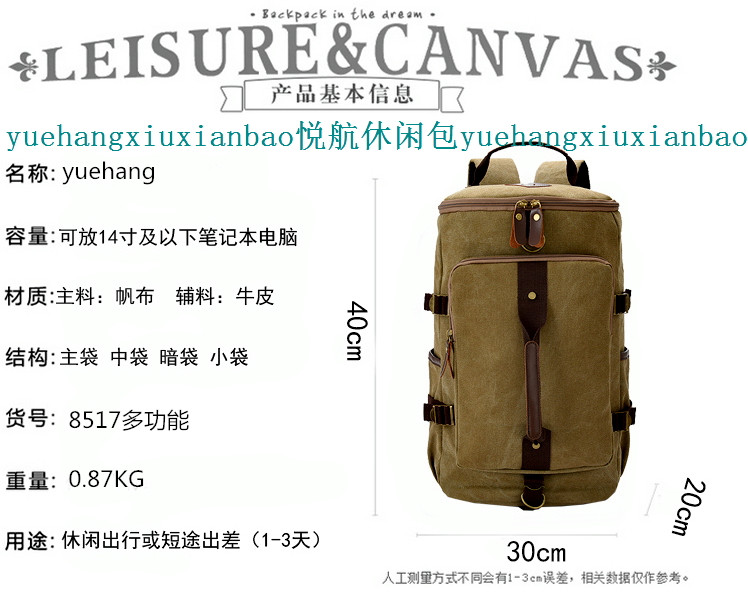 《悦航休闲包》专业精做帆布双肩包,单肩包,胸包,挎包,腰包。常规有现货,现货不定款,有需求的经营商可以加我QQ2579610723联系。国内客户可以混款混色100个发货。没有现货的款式300个起订。(每色最少100个起订)