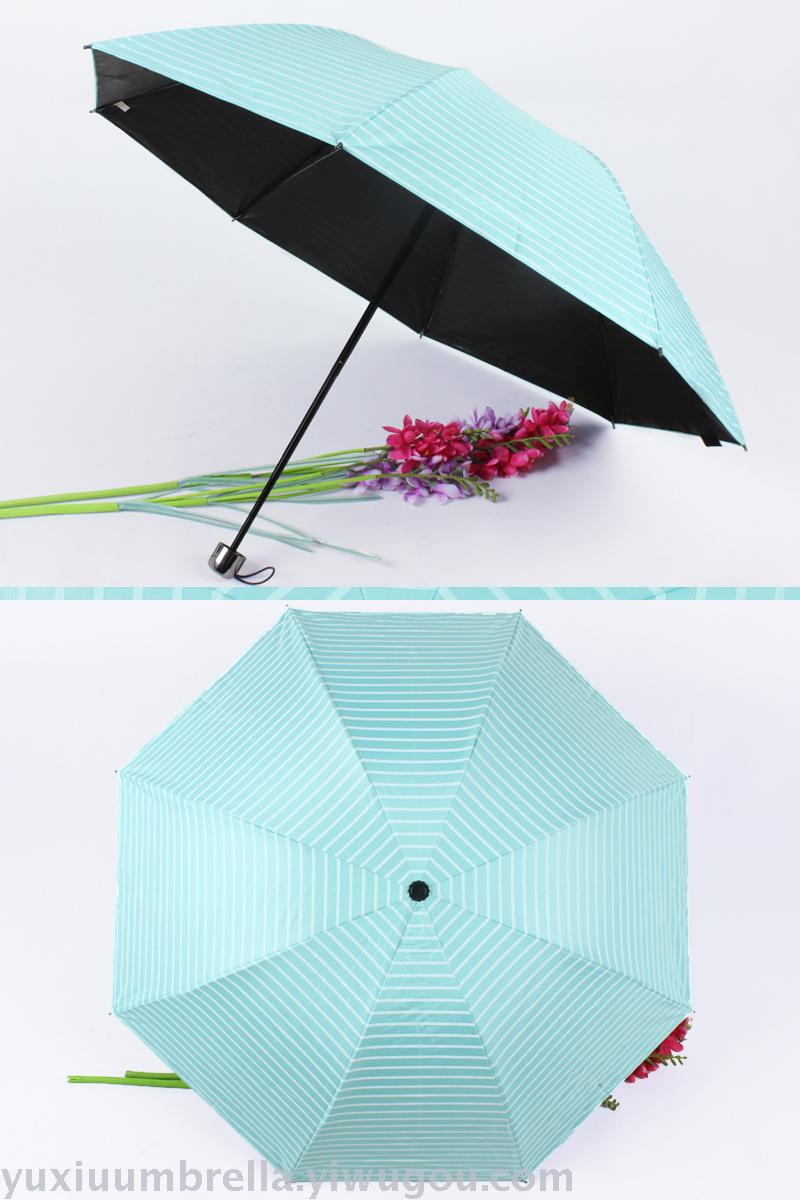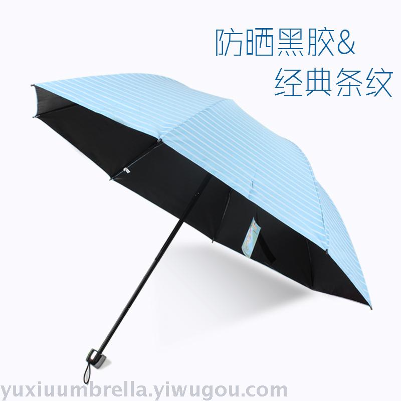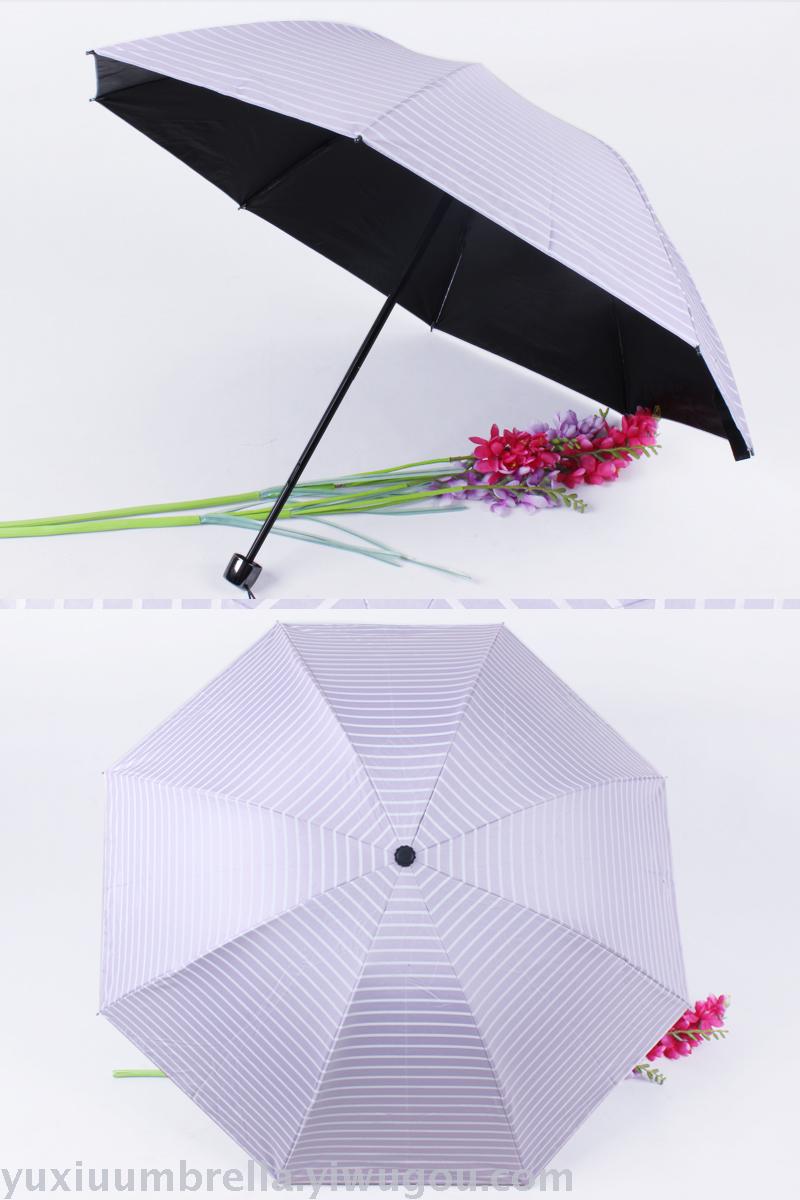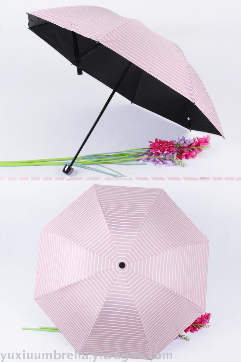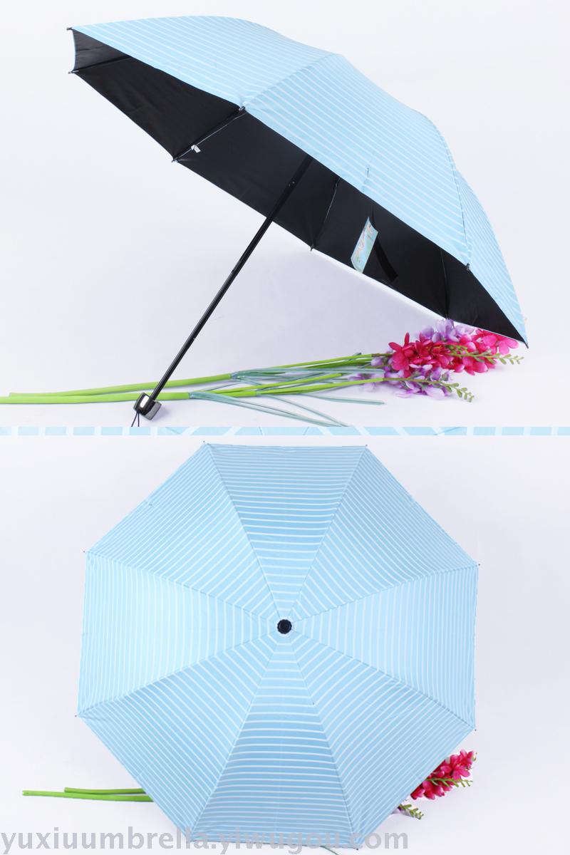条纹黑胶创意三折晴雨伞 情侣遮阳伞现货批发便宜 可定做 投诉