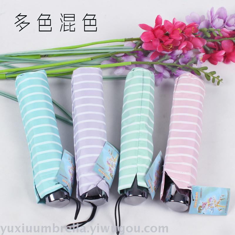 条纹黑胶创意三折晴雨伞 情侣遮阳伞现货批发便宜 可定做