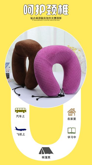 天鹅绒记忆棉U型枕办公室护颈u型枕头学生枕飞机枕带绳子可定做 English | 投诉