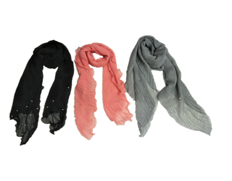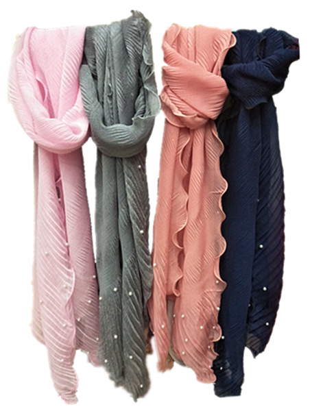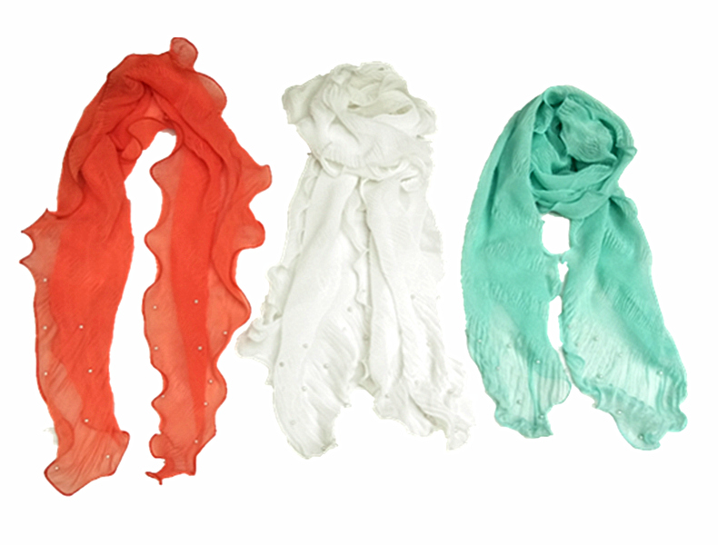 30D雪纺钢丝斜上皱波浪边珍珠韩版围巾,各式各样的面料颜色,2018春夏新款。接布料、花色、尺寸定制。厂家直销。量大从优,欢迎微信联系,或来店面谈~该围巾易清洗、不易起毛球,时尚百搭,深受韩国客户喜爱。