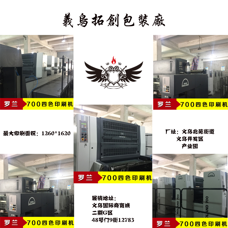 【印刷】:全新海德堡对开四色CP2000,2008年德国刚引进机器,印刷面积可达:720mmX1020mm。此外,我们还备有海德堡四开四色机、双色机、单色机为您服务。发货便捷,交货急时。