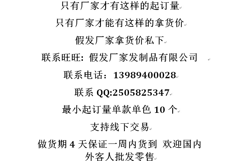 8—注意不要在假发上喷哲理水、发蜡之类真发使用的定型剂这样会让假发变的粘腻