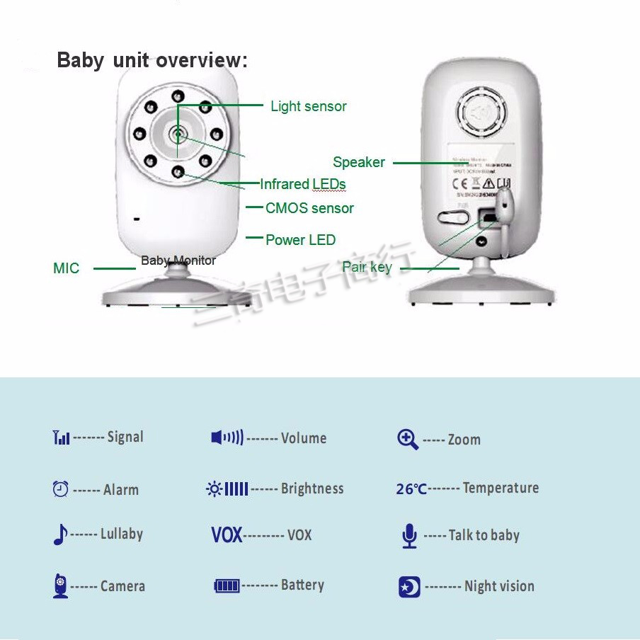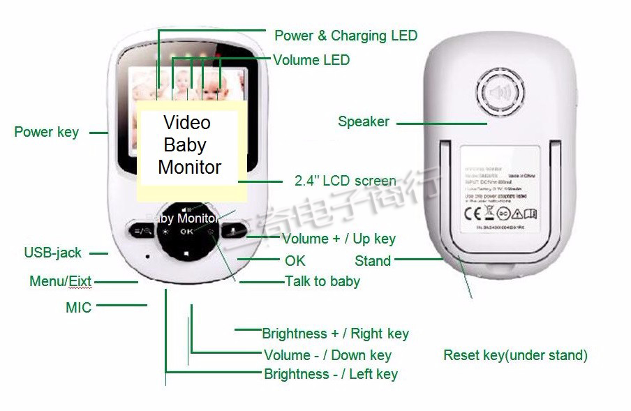 3. Monitor: 2.4 inch TFT LCD , Scan View , video baby monitor