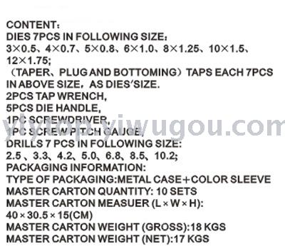 44件公制丝锥板牙套装 投诉
