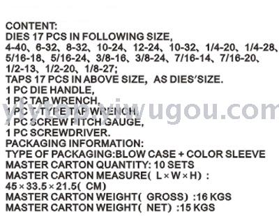40件英制丝锥板牙套装 投诉