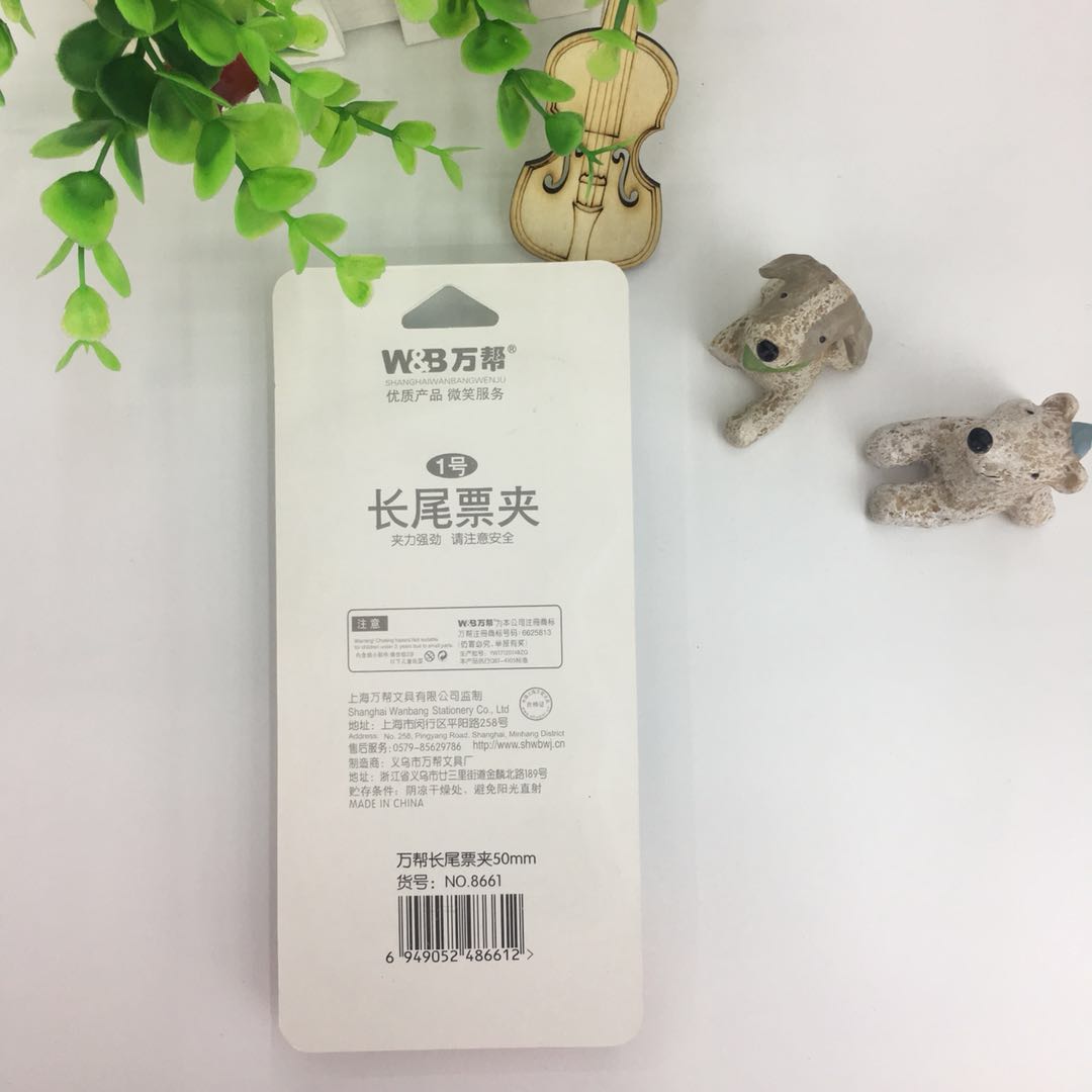 万帮 8551型彩色/粉色电镀长尾票夹50mm