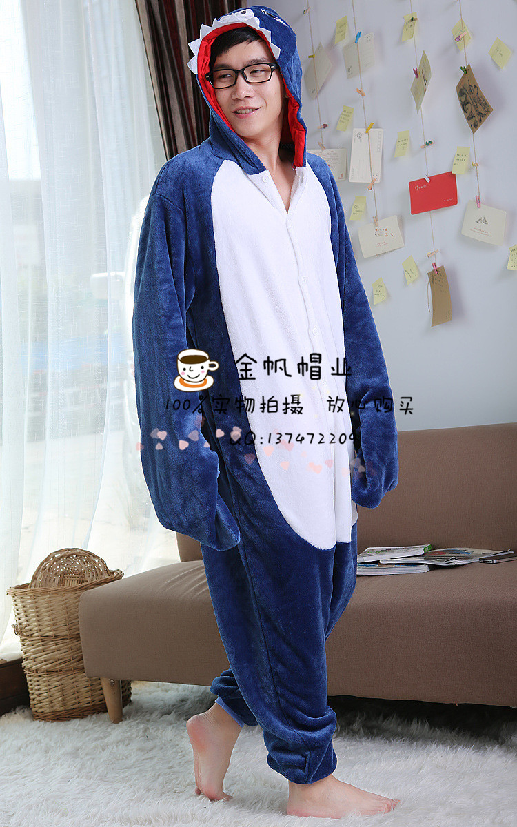 冬季动物连体睡衣卡通鲨鱼法兰绒成人儿童家居服如厕版