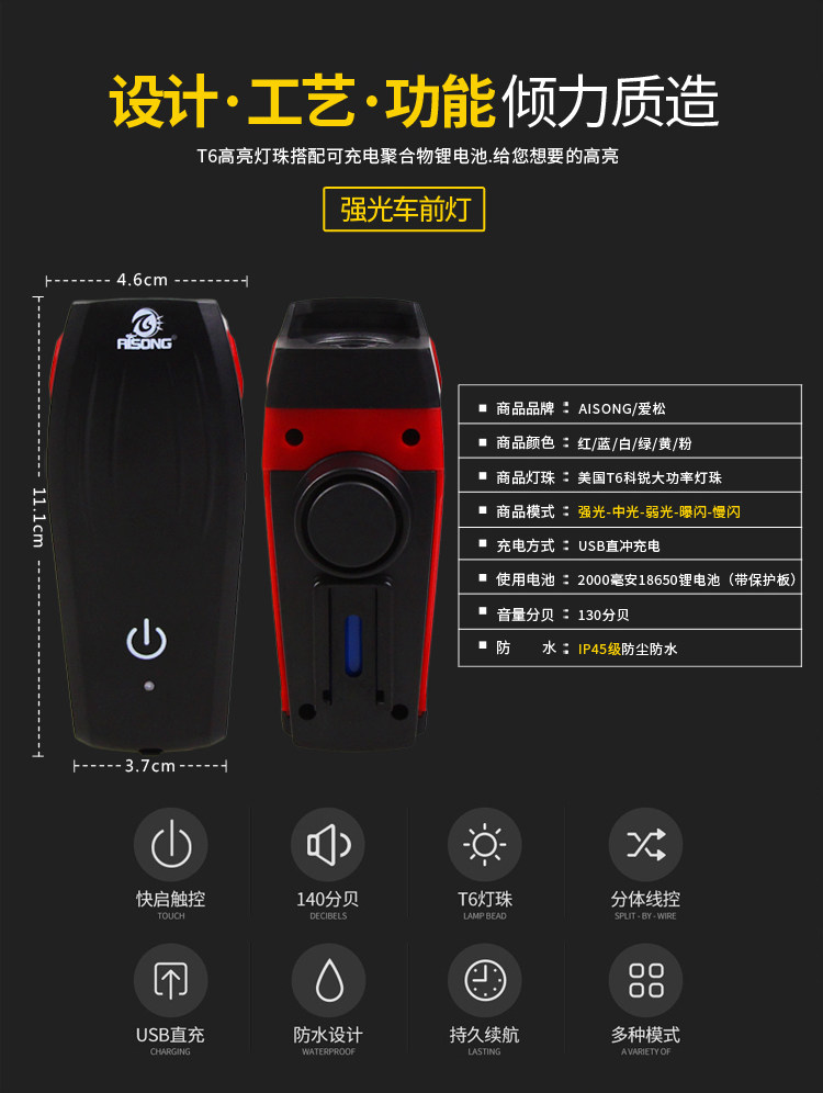 本手电的优点:体积小巧,重量轻,便于携带,坚固耐用,具备全天候使用功能,光照强烈,直射距离远,强弱光线可选择,强光—远时,弱光——近照,紧急时——爆闪光。顶部氧化钛合金加强攻一击一头设计,可在紧急情况下替代安全锤用来砸碎车窗逃生。