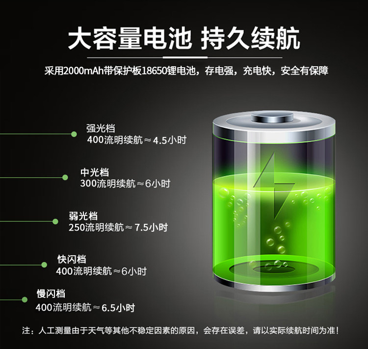 本店所卖手电真实标注亮度,电池续航时间长,光色纯净透白,聚光效果好!是工程作,野外运动的辅助工具!