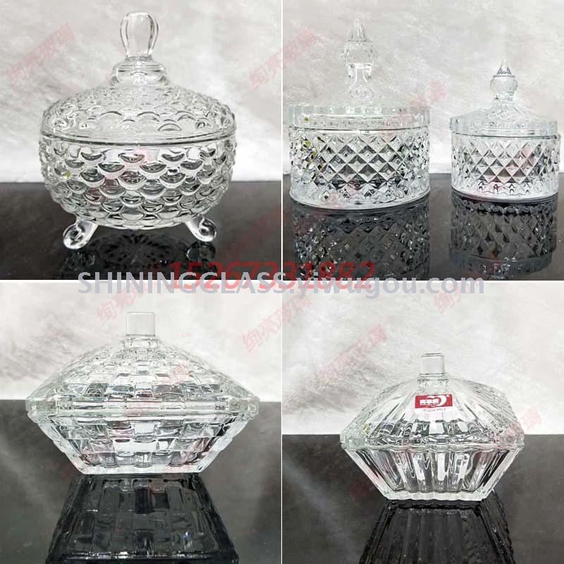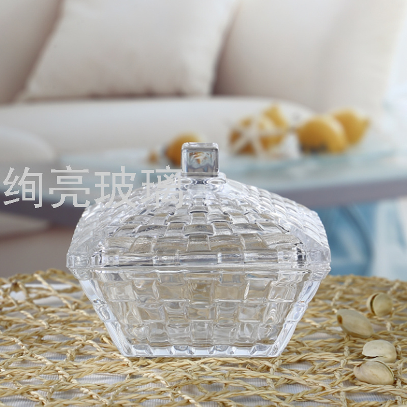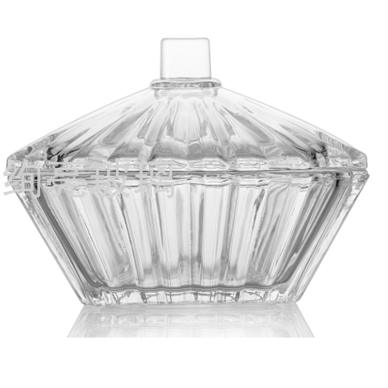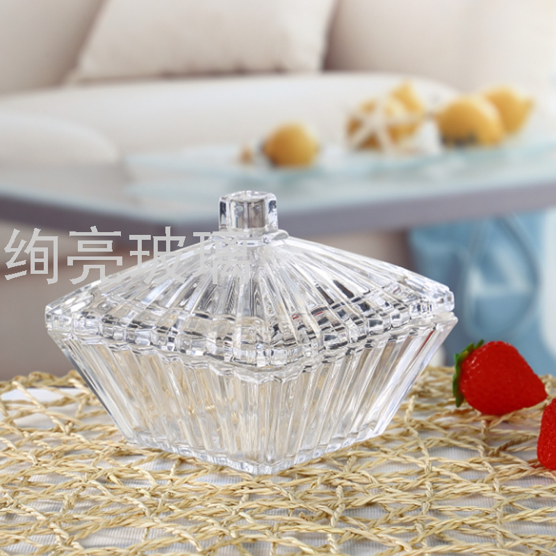 玻璃糖缸三角鱼鳞糖果盅 四方编织糖果罐 尖顶菱形钻石糖缸