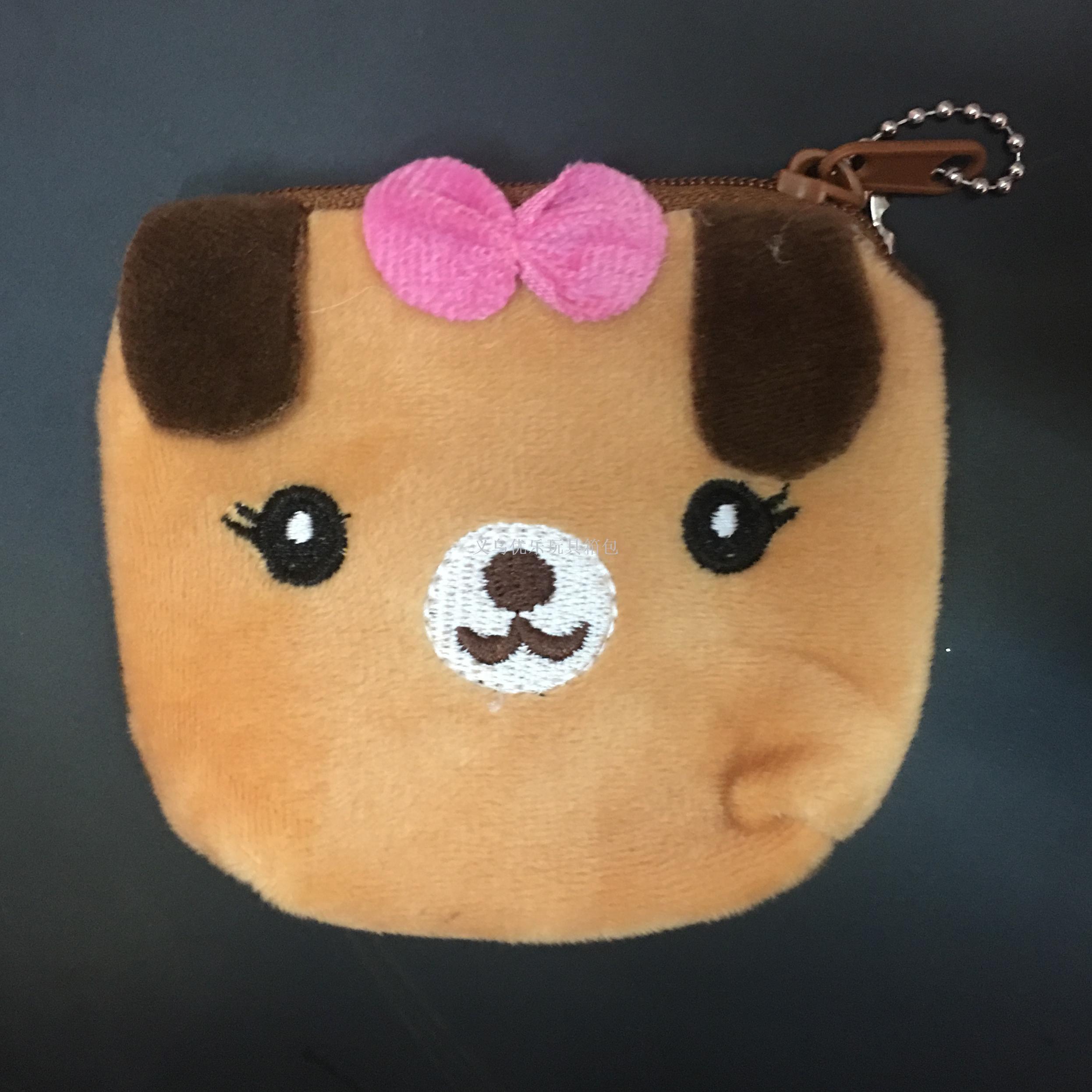 卡通毛绒动物刺绣梯形钥匙扣零钱包