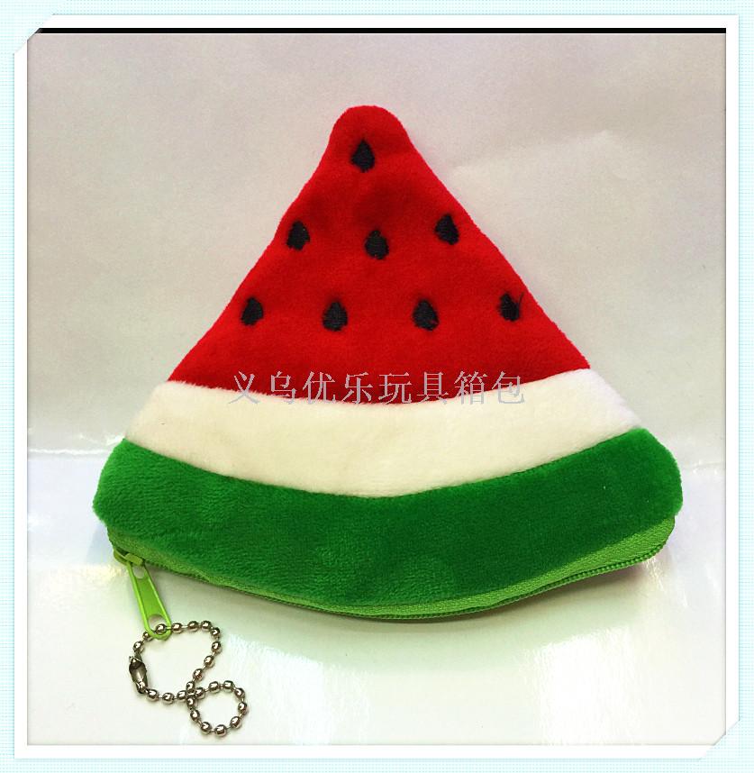 毛绒零钱包  耳机包 刺绣三角形水果钥匙扣零钱包