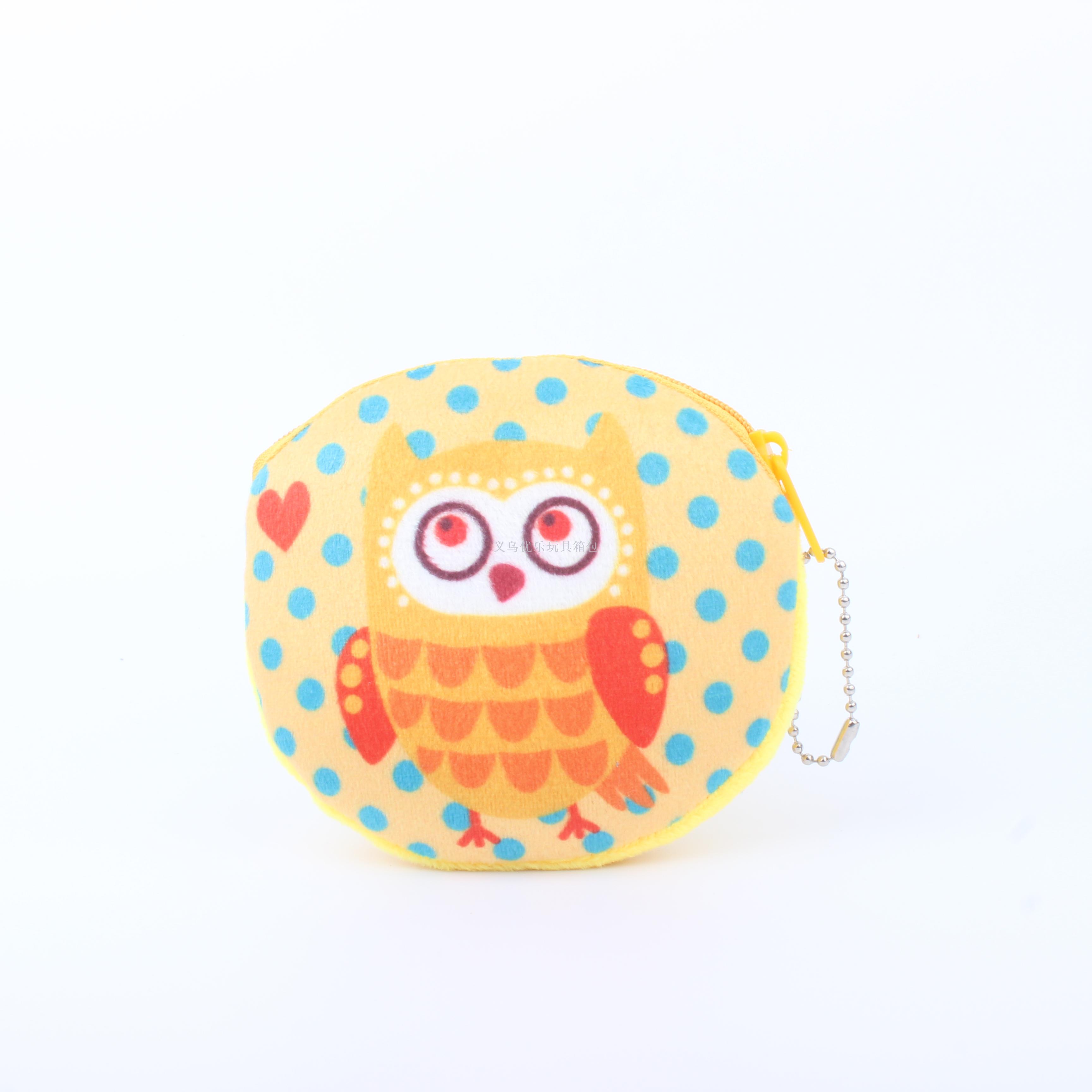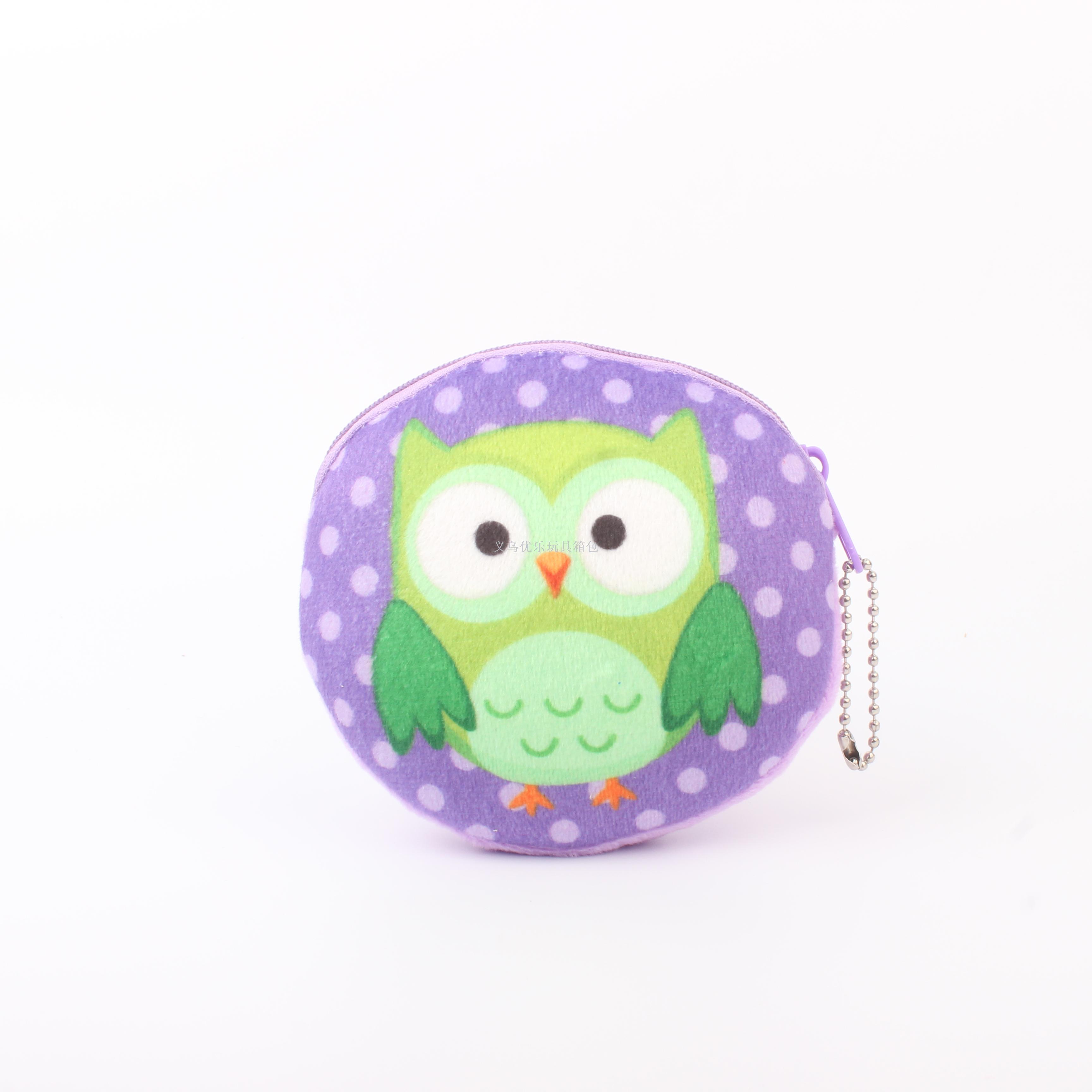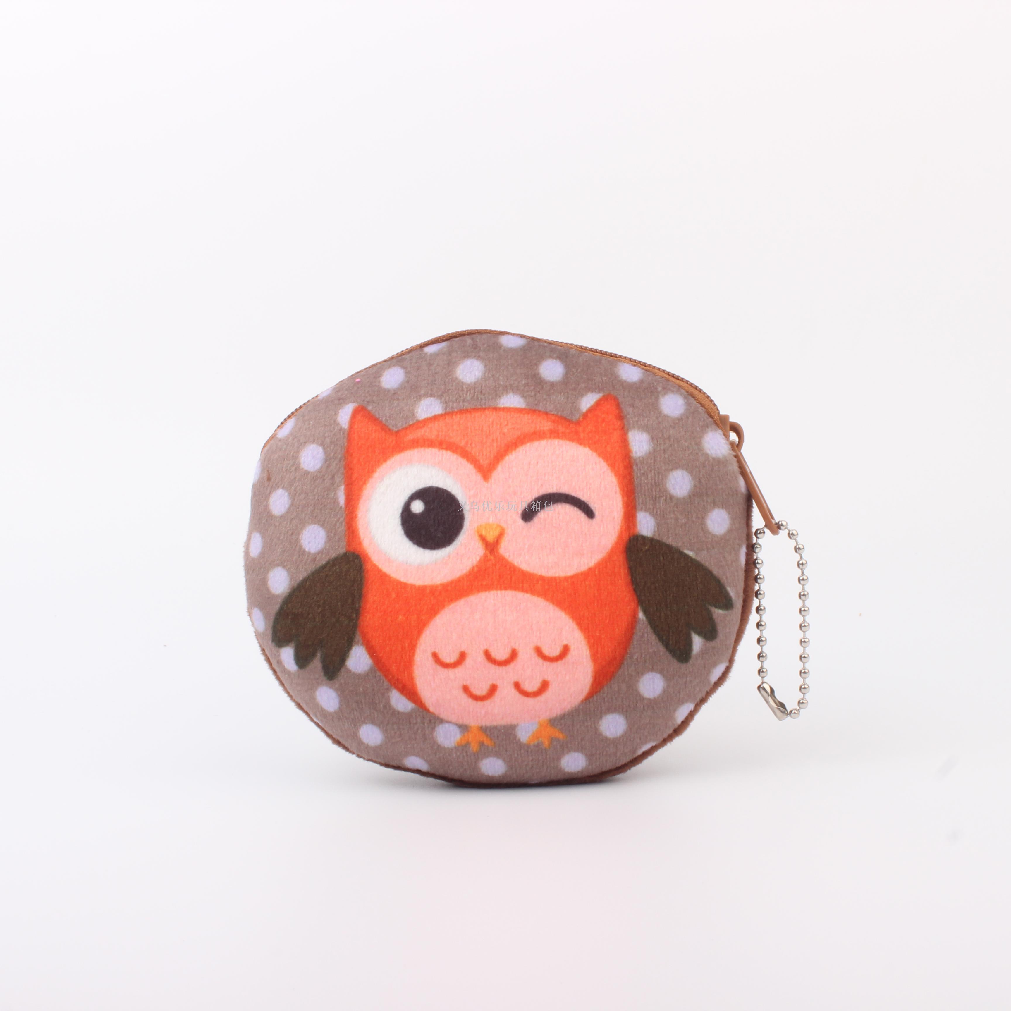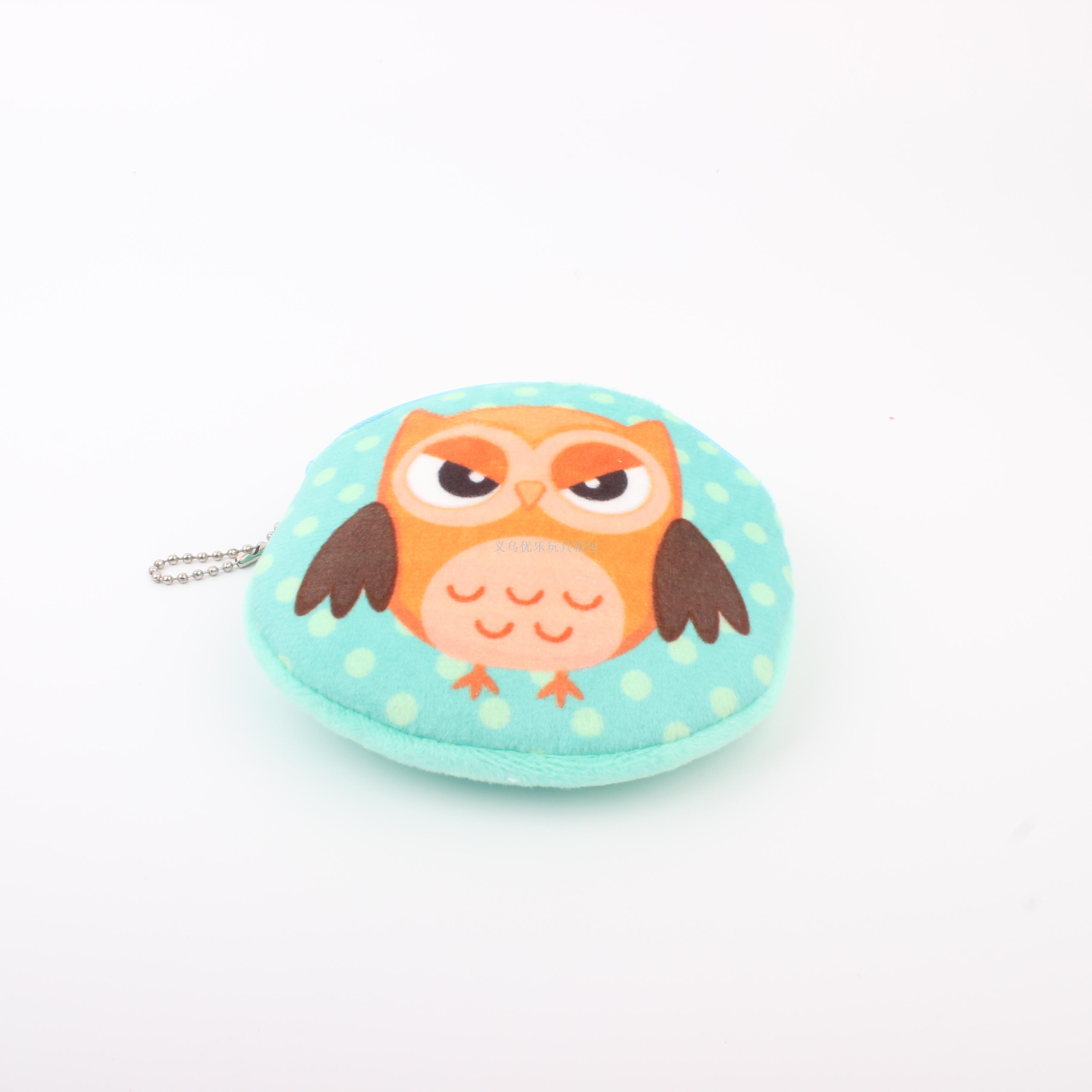 毛绒卡通猫头鹰系列圆形钥匙扣零钱包