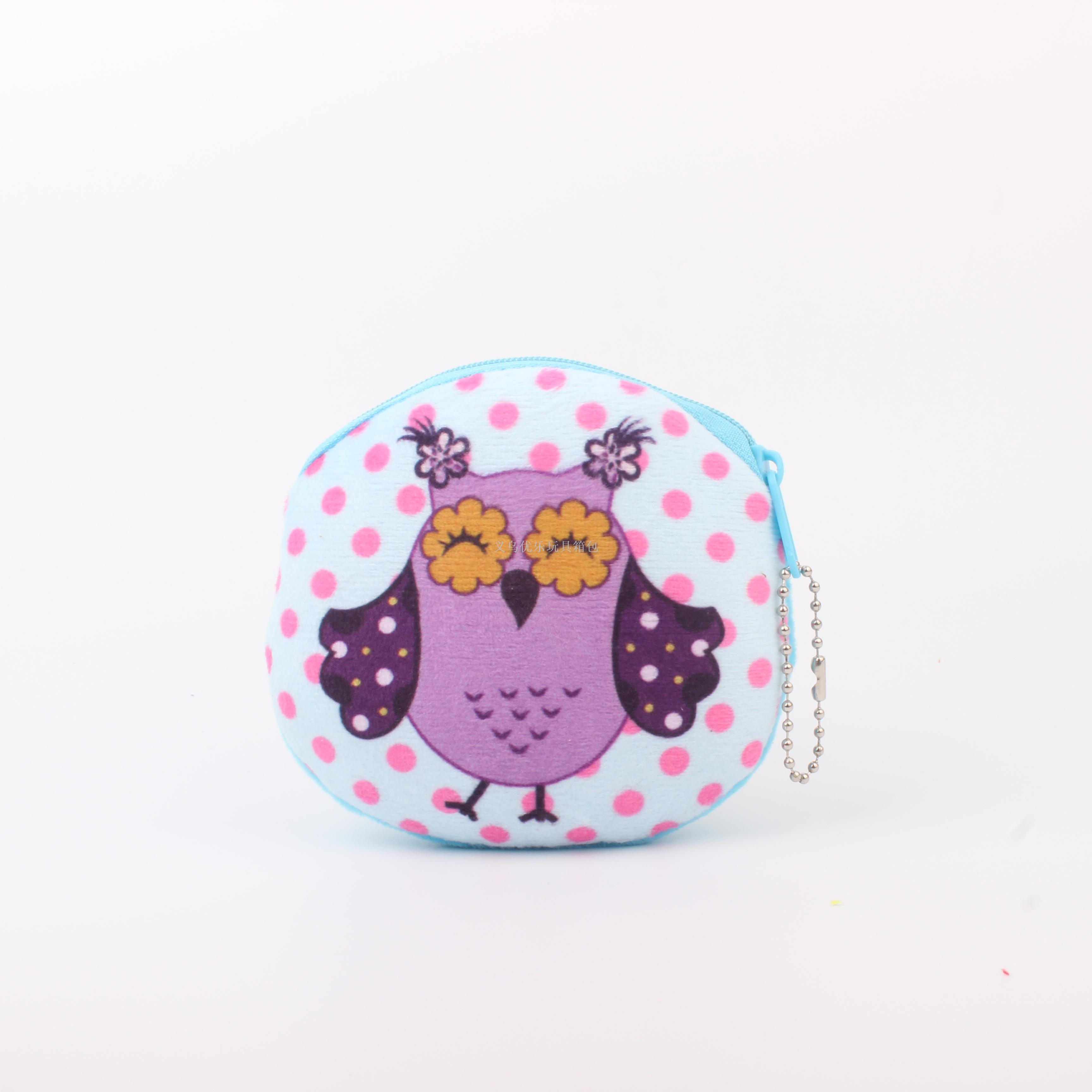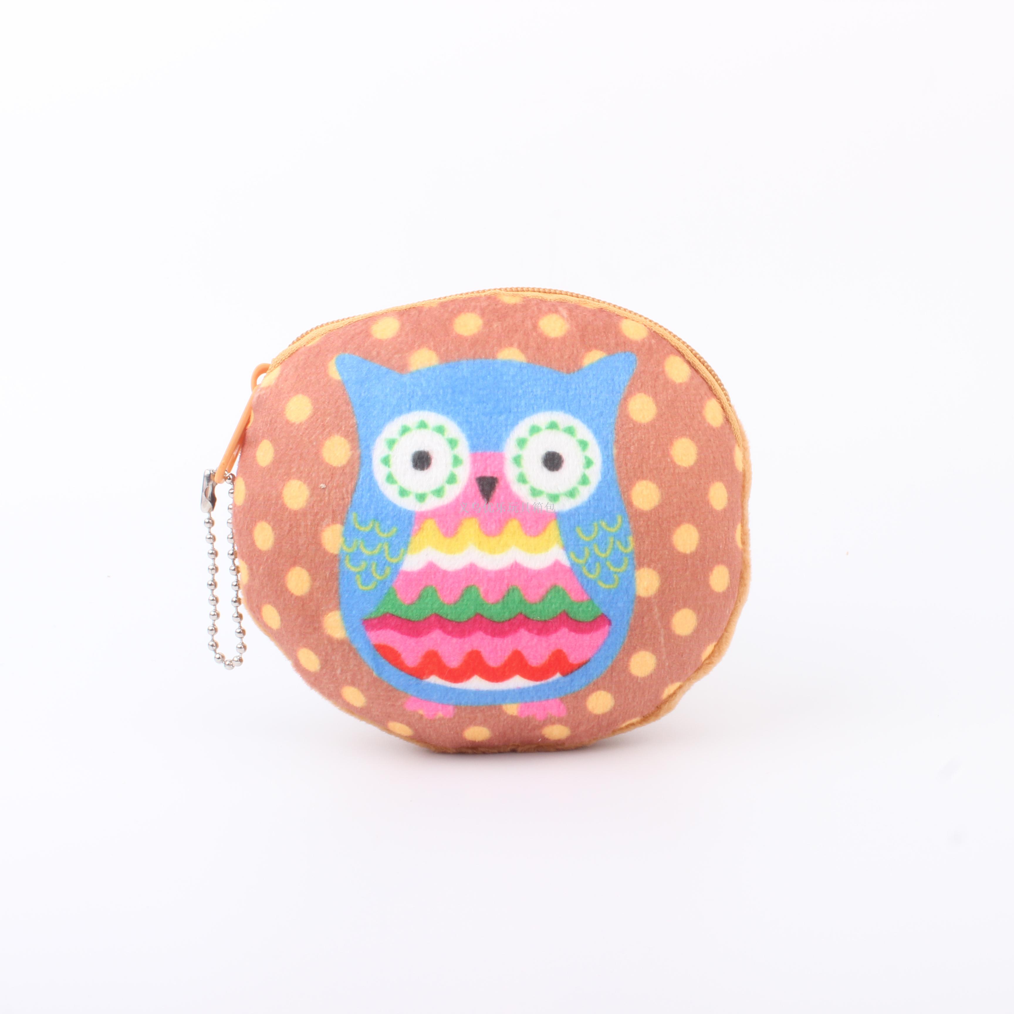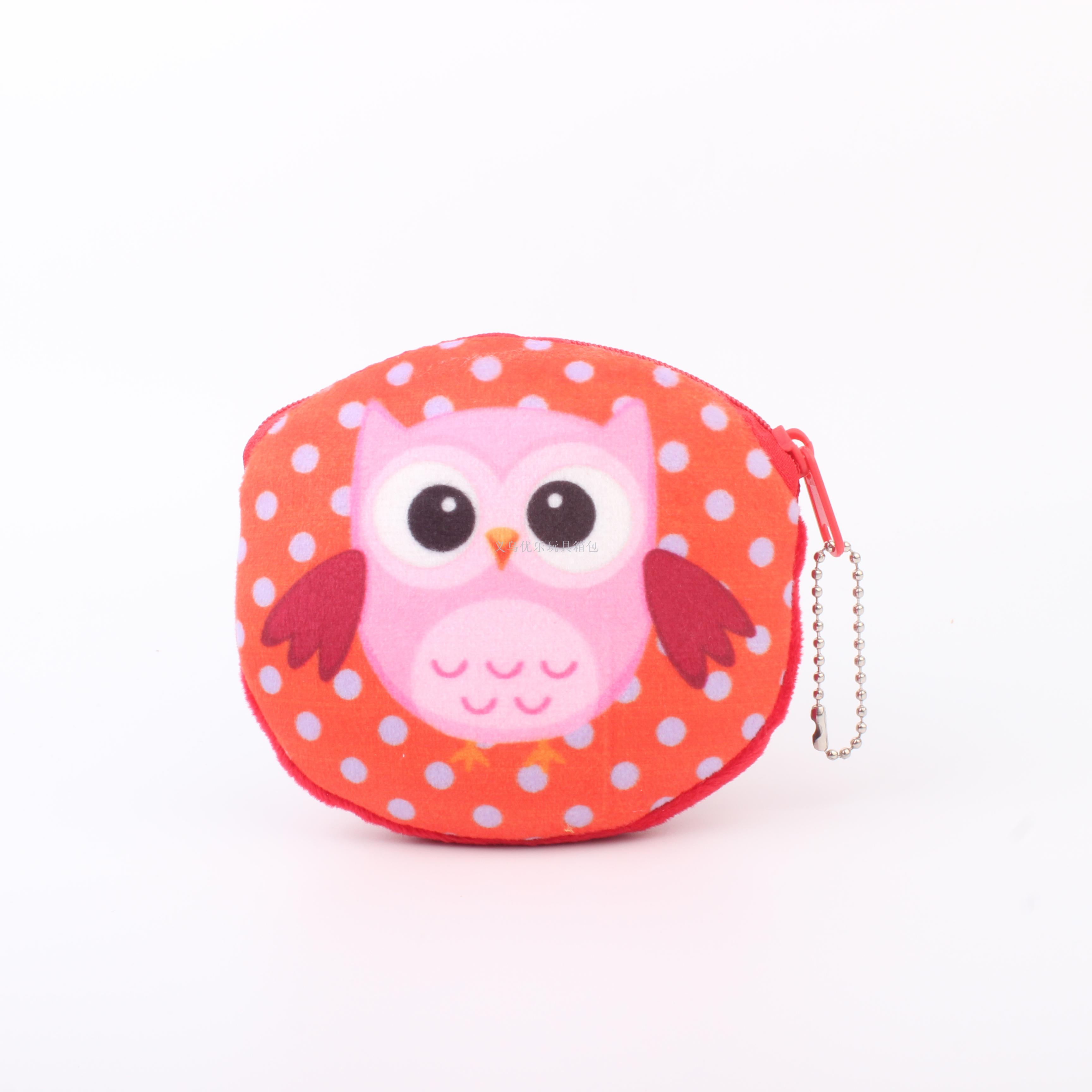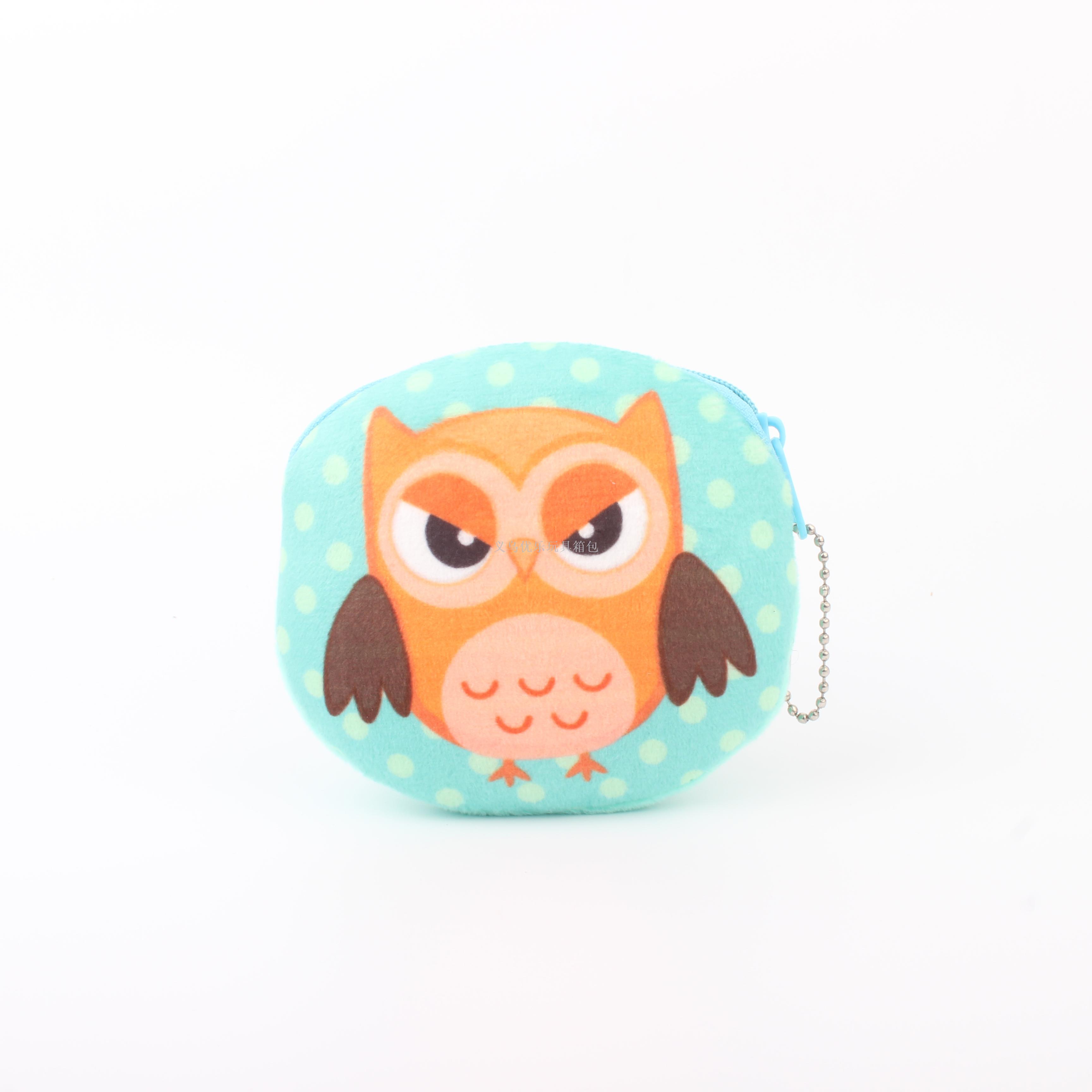 毛绒卡通猫头鹰系列圆形钥匙扣零钱包