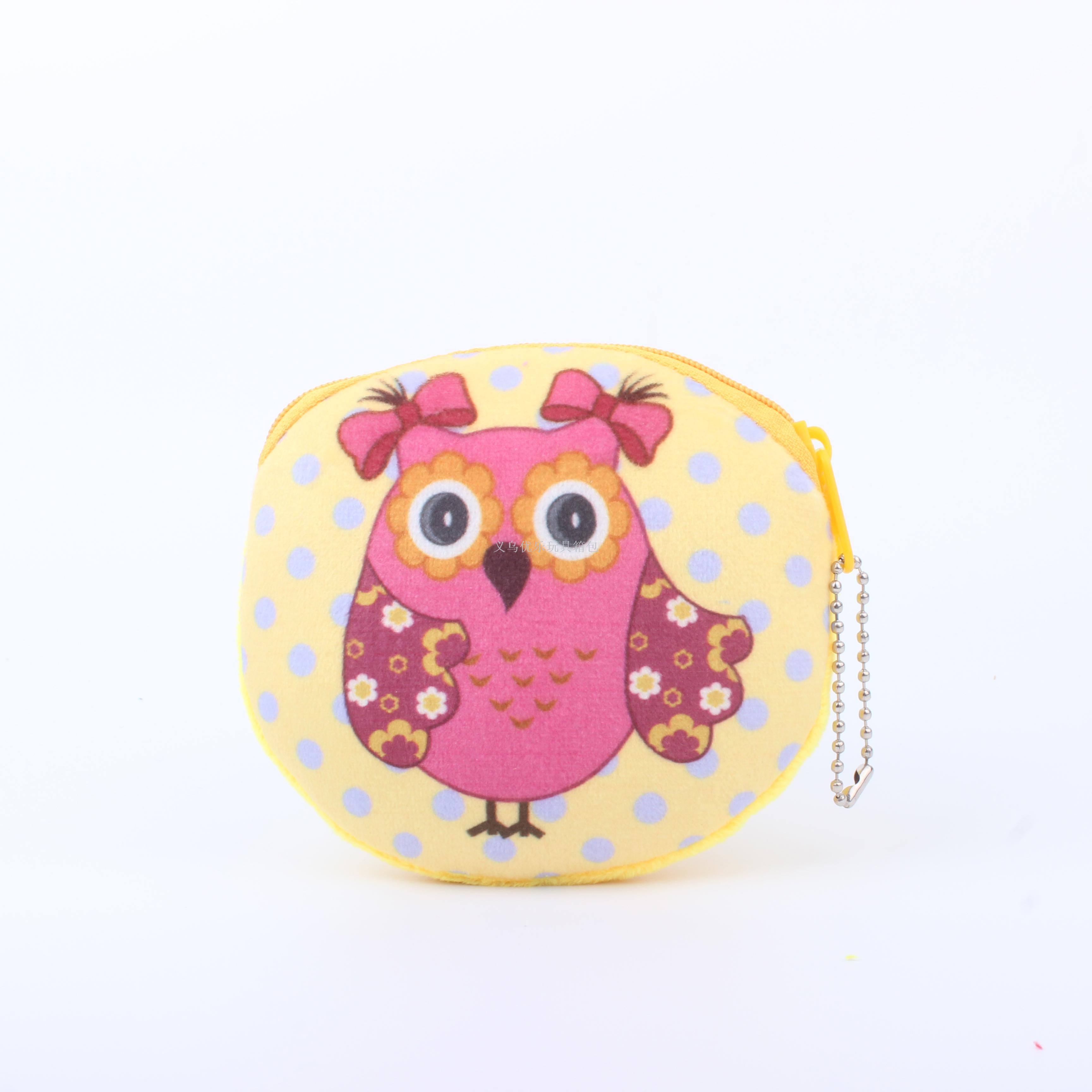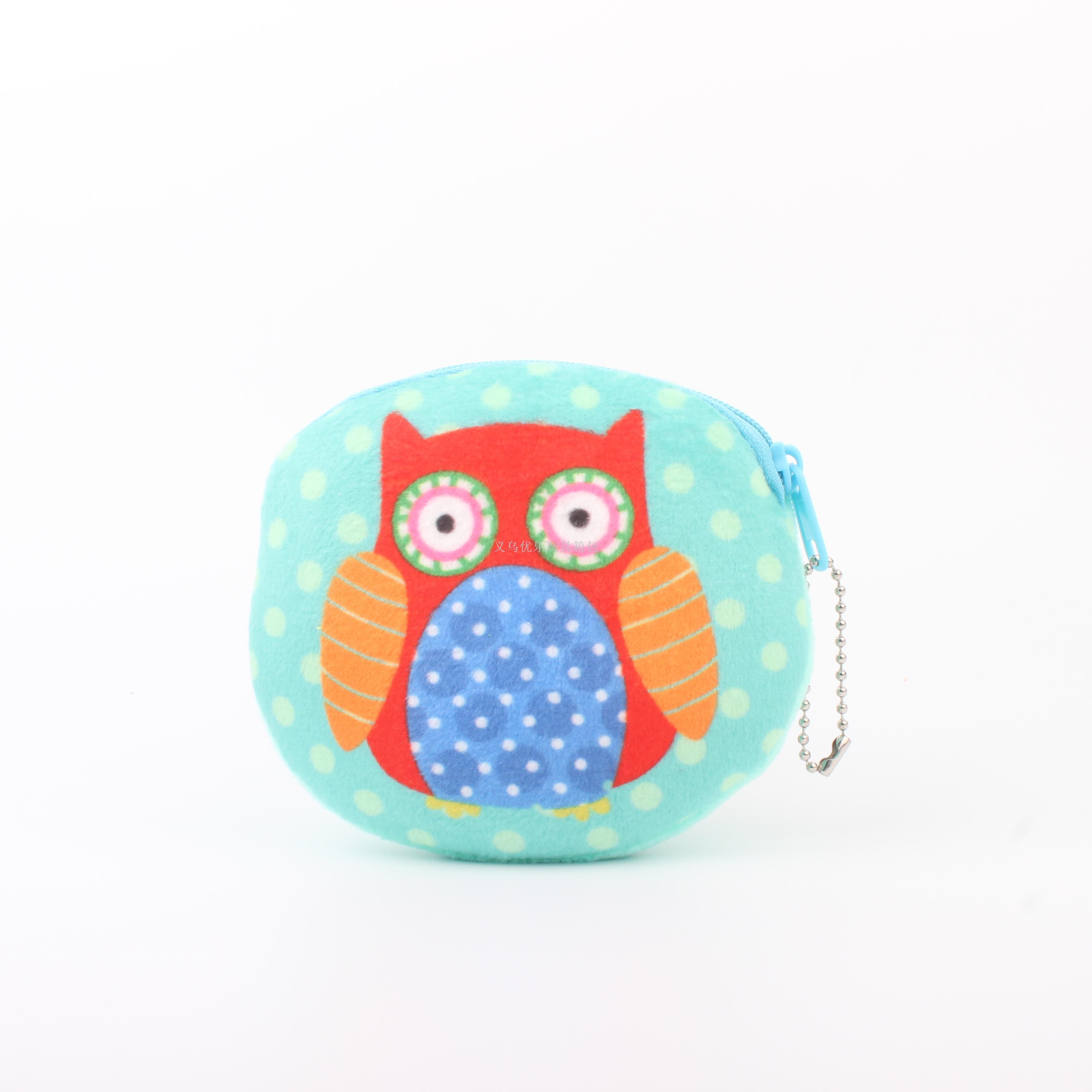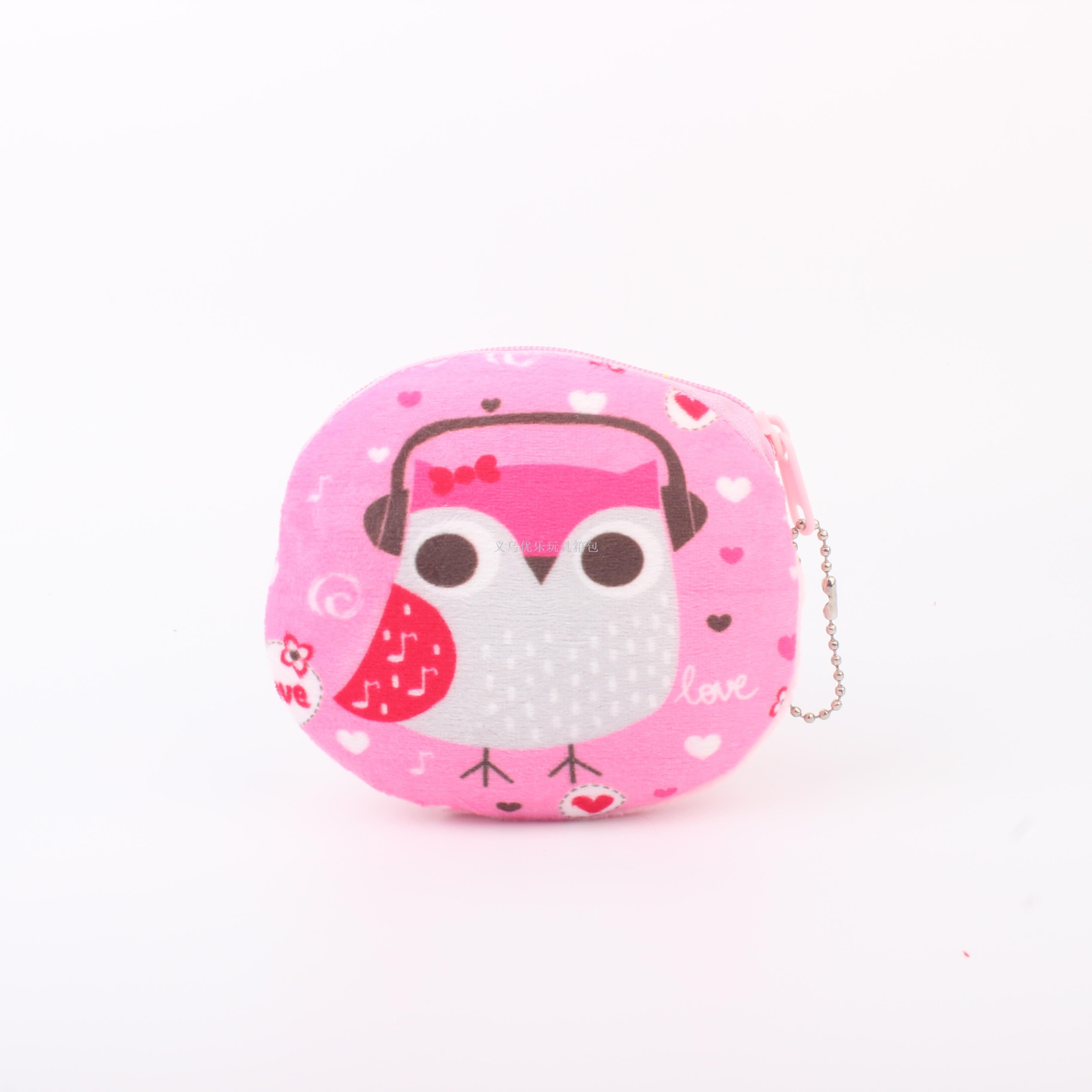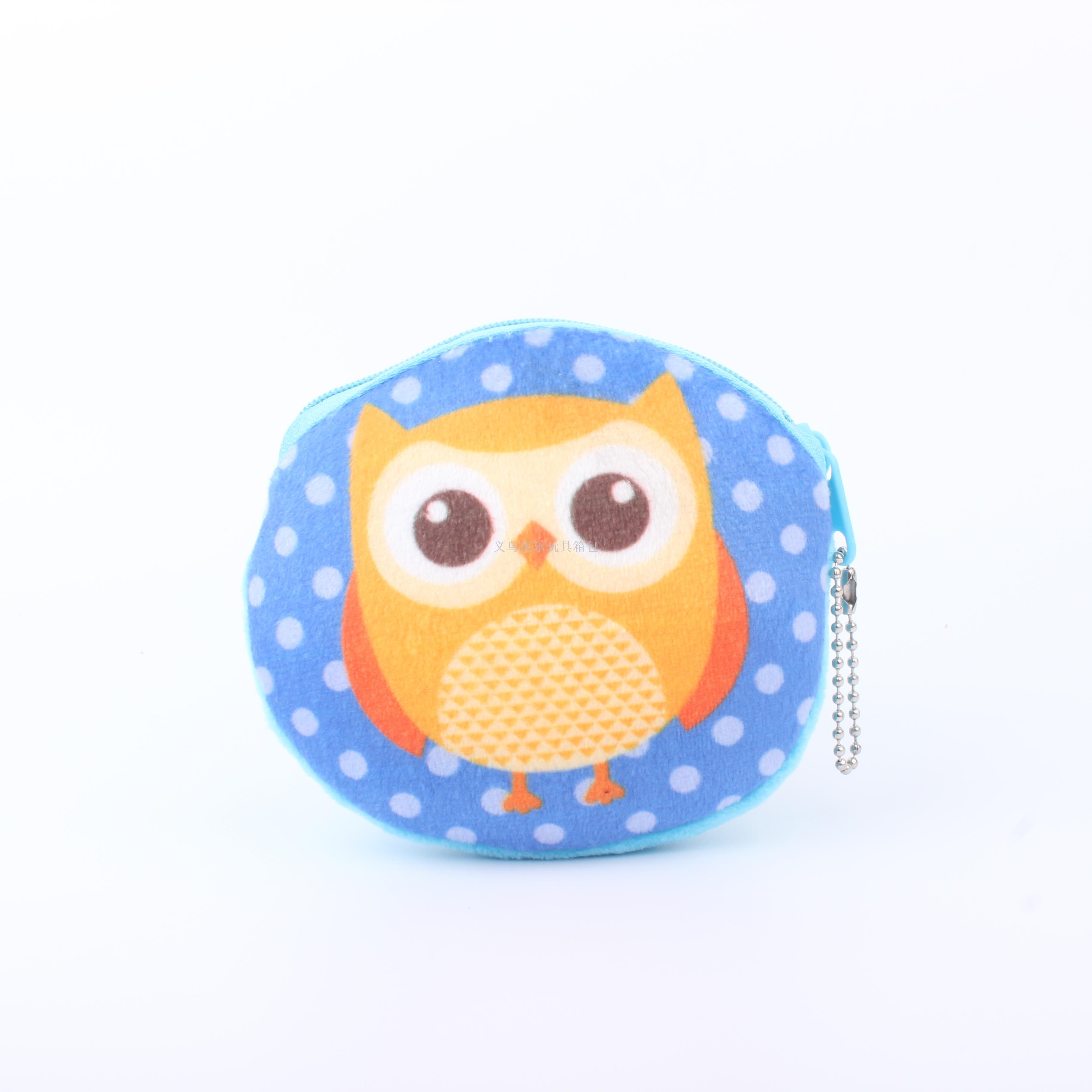 毛绒卡通猫头鹰系列圆形钥匙扣零钱包