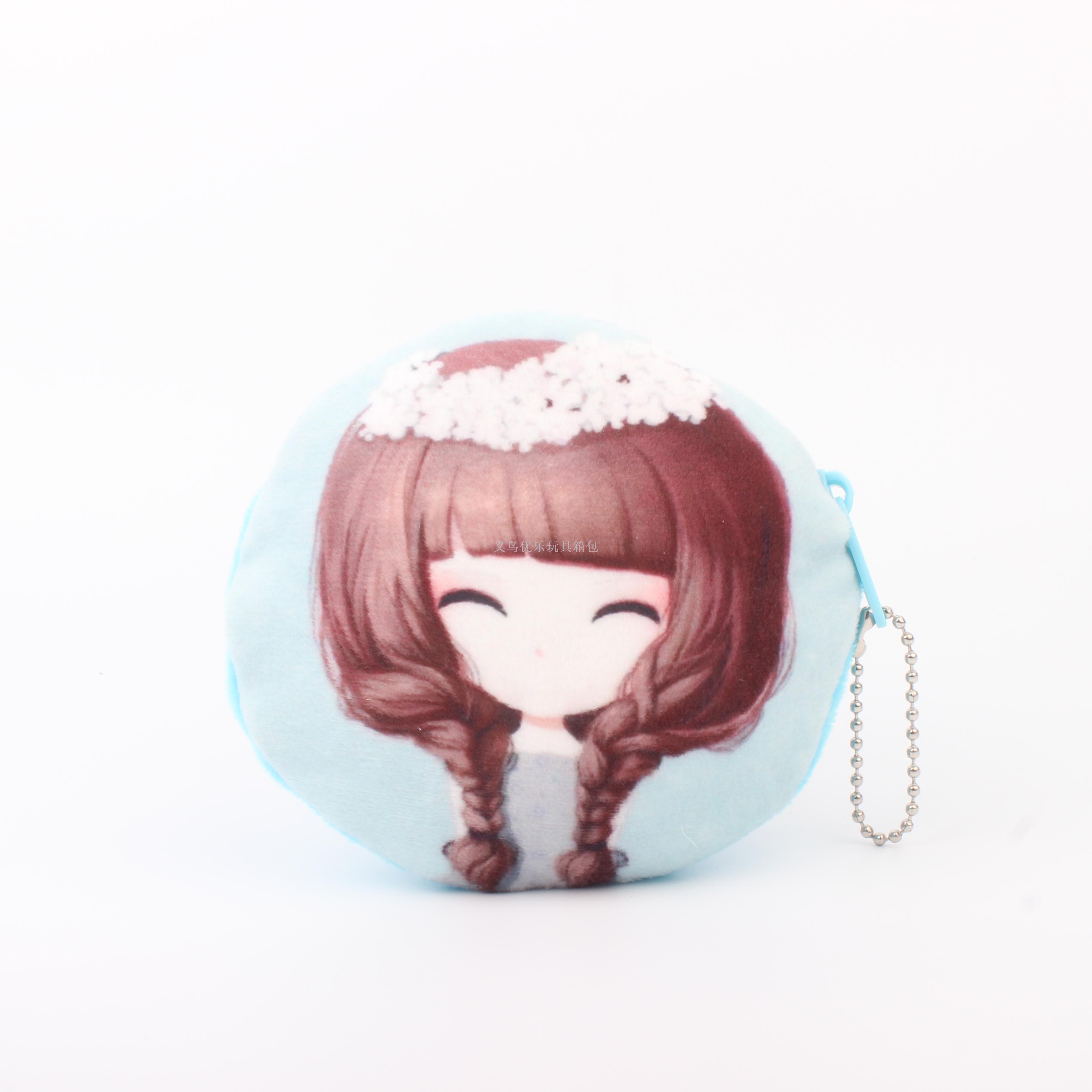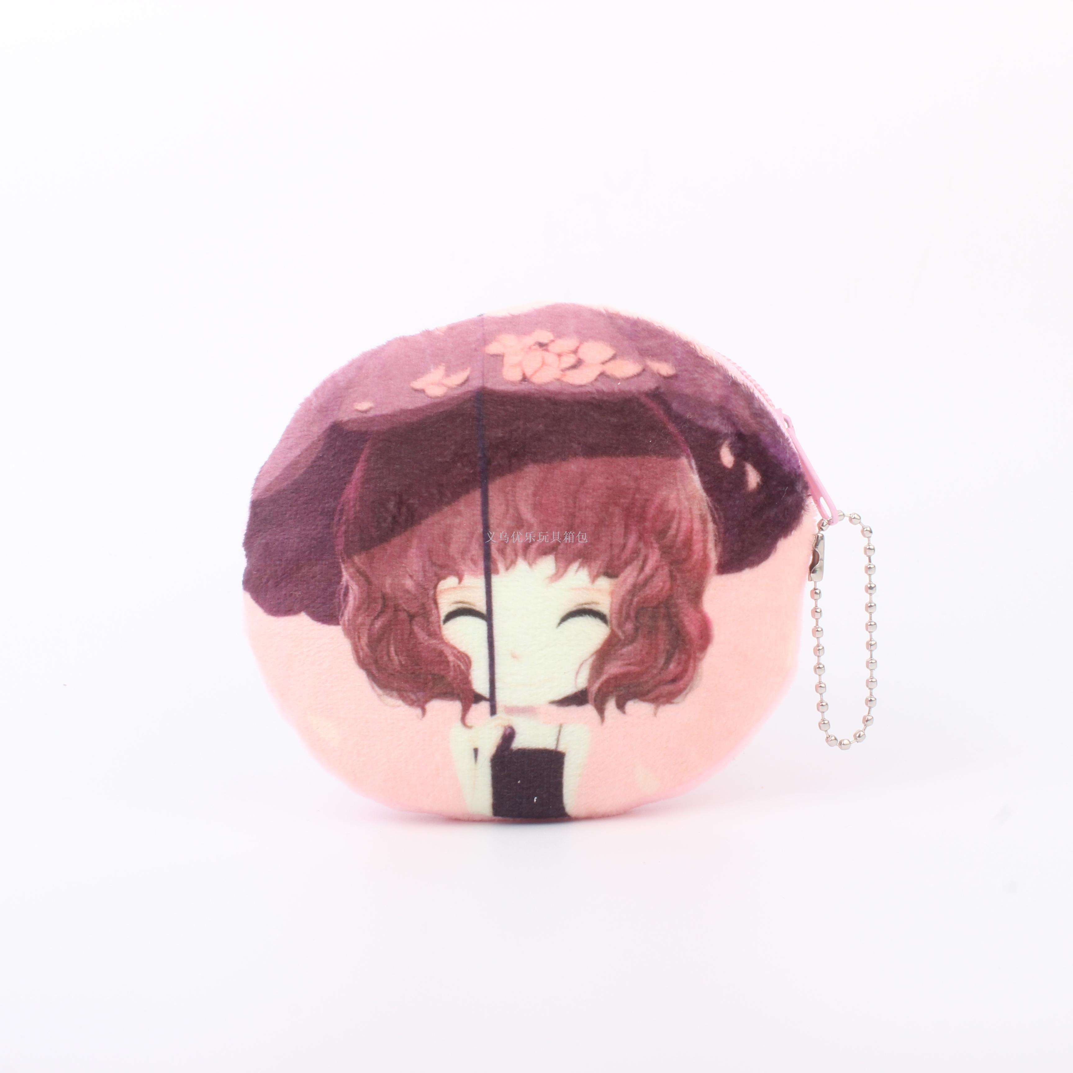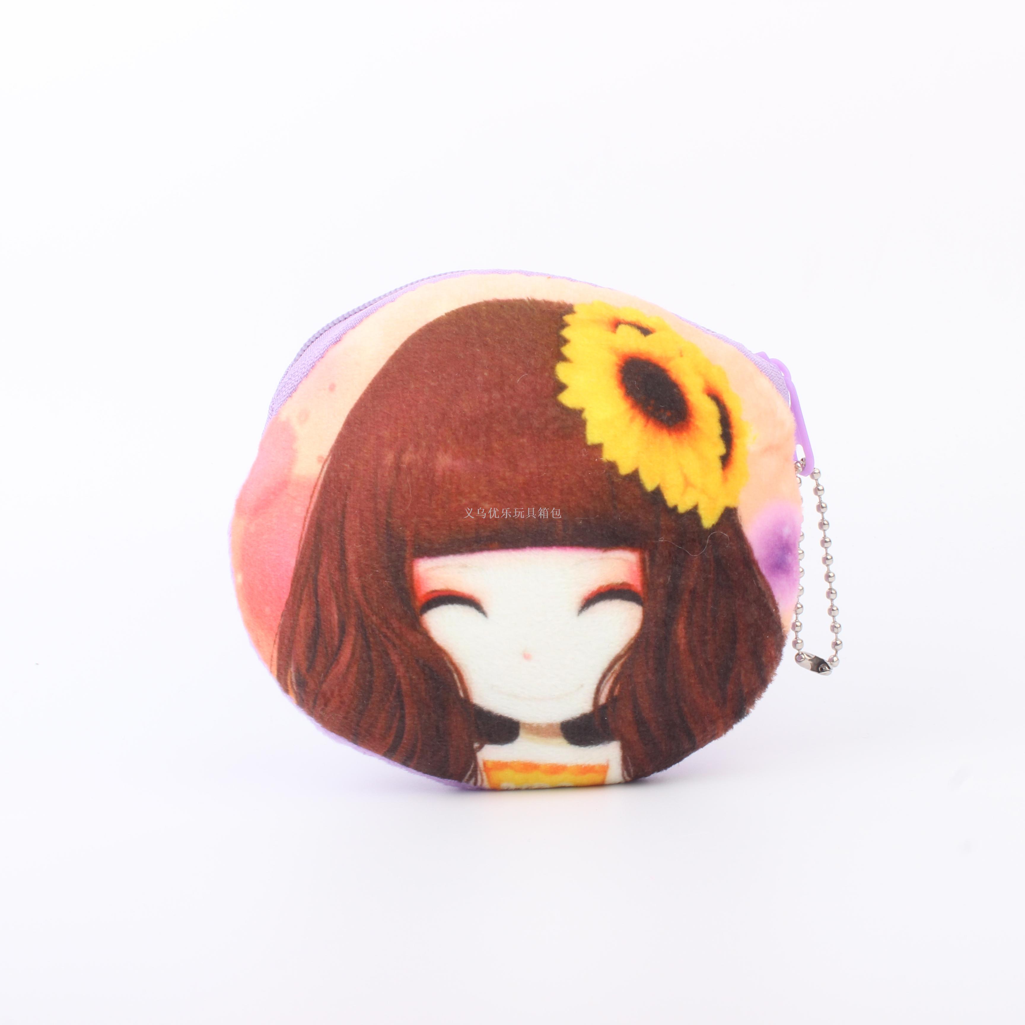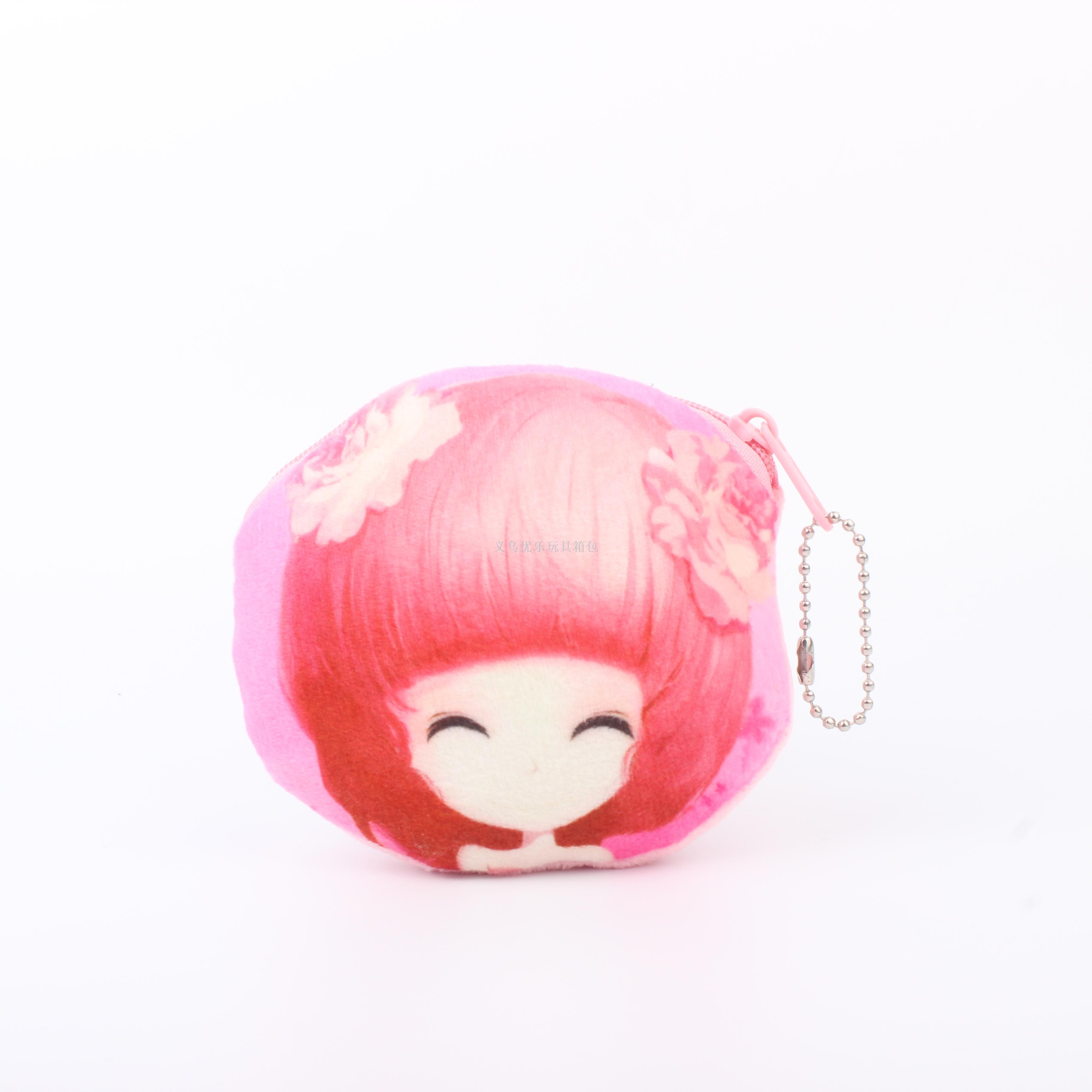 毛绒卡通花花姑娘系列圆形钥匙扣零钱包
