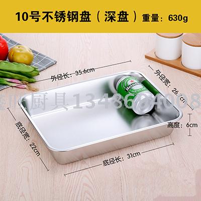 加厚加深平底方盘托盘304不锈钢方盘毛巾盘蛋糕盘面包盘