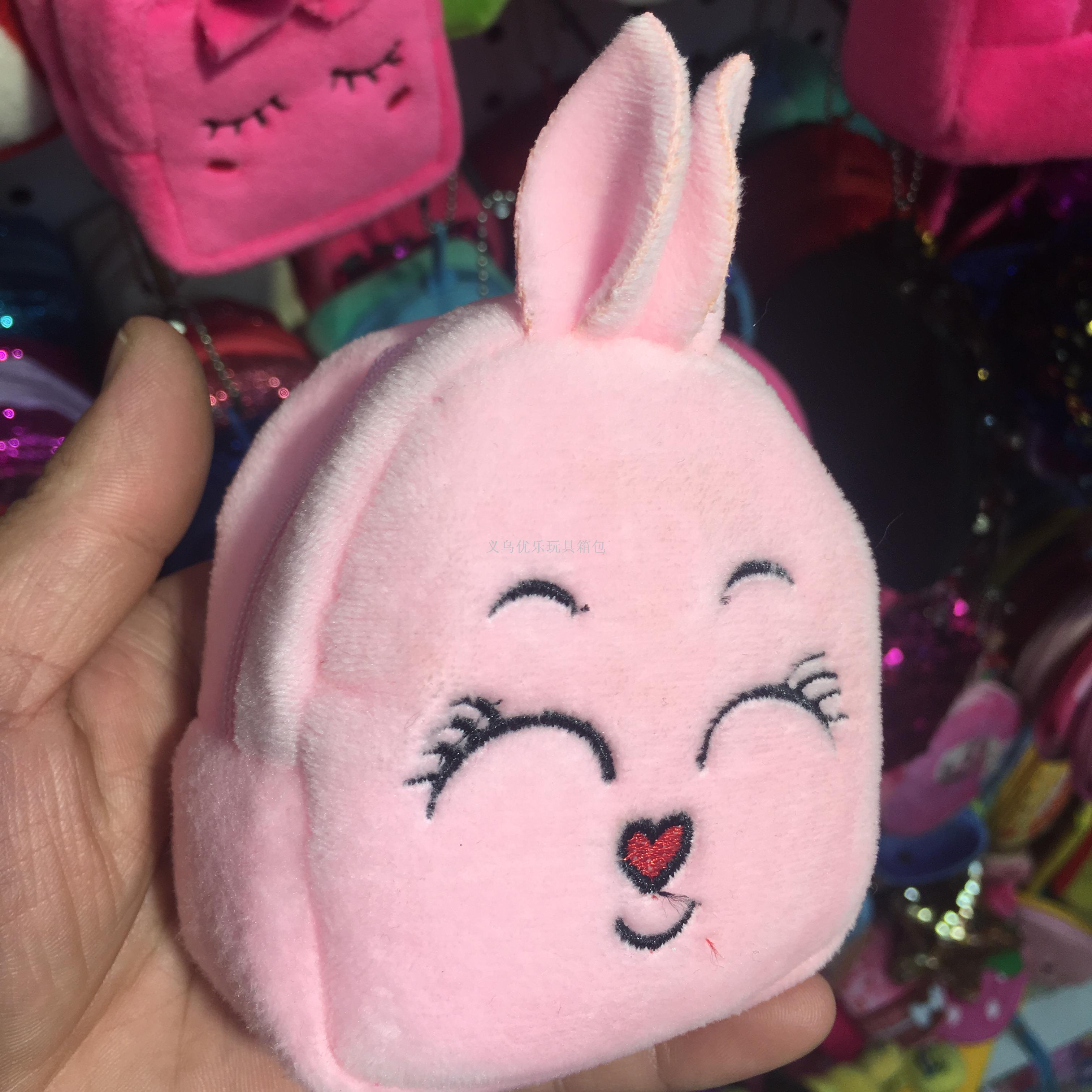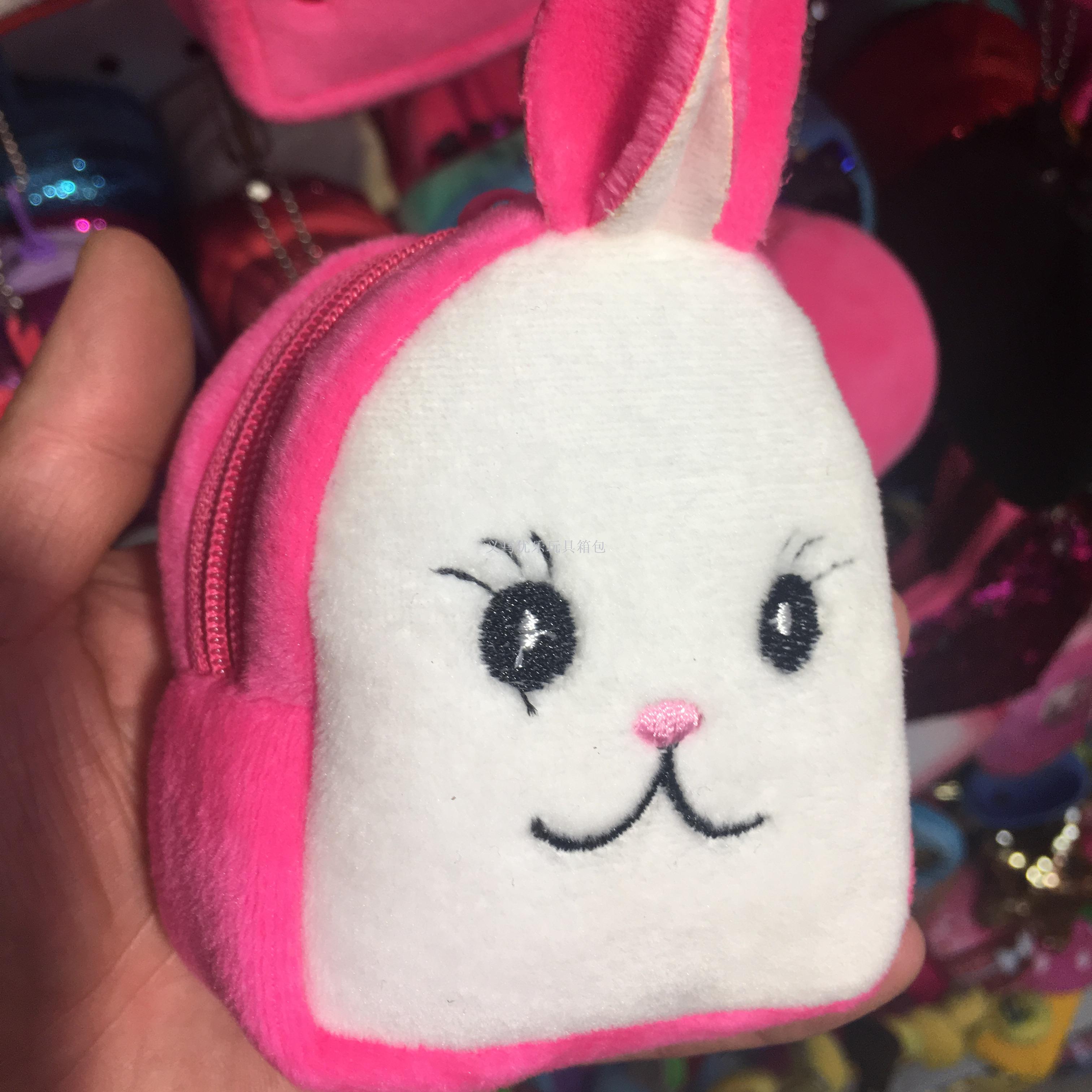 卡通毛绒刺绣立体小书包型钥匙扣零钱包