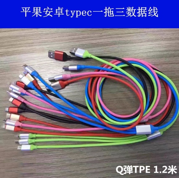 【产品名称】:一拖三数据线 【适用型号】:苹果安卓TYPE-C通用