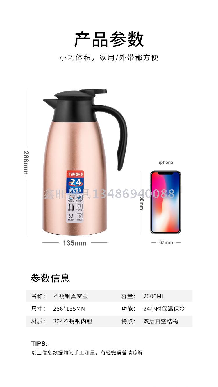 不锈钢真空保温壶大容量欧式咖啡壶家用暖水瓶 2L热开水瓶 投诉