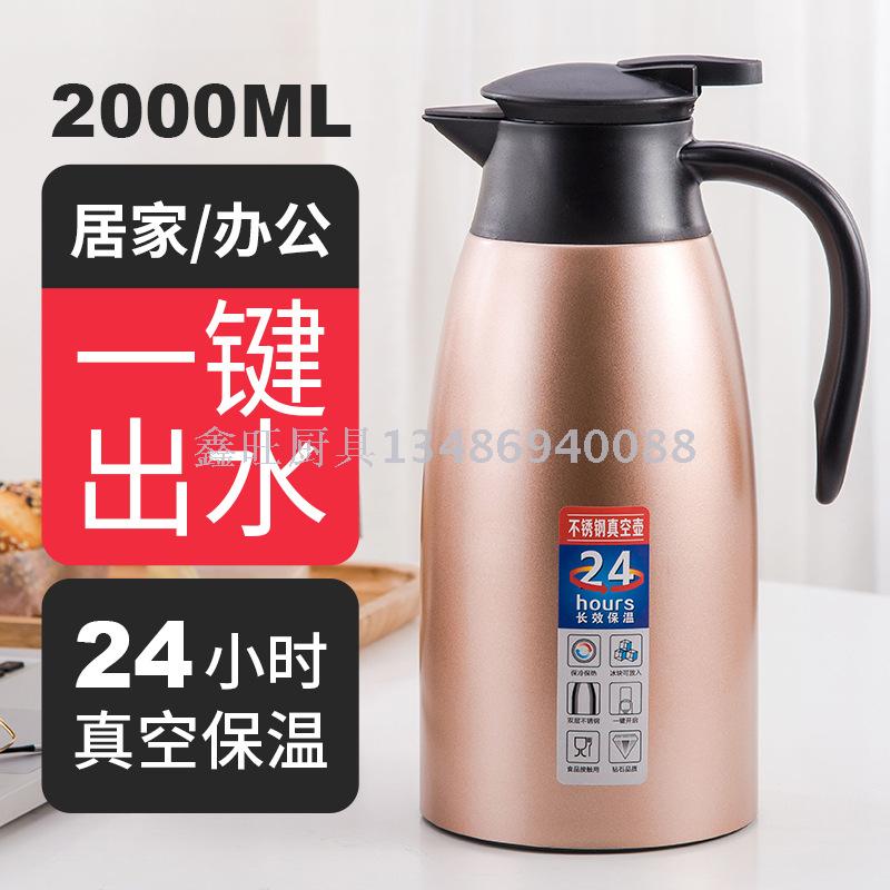 不锈钢真空保温壶大容量欧式咖啡壶家用暖水瓶 2L热开水瓶