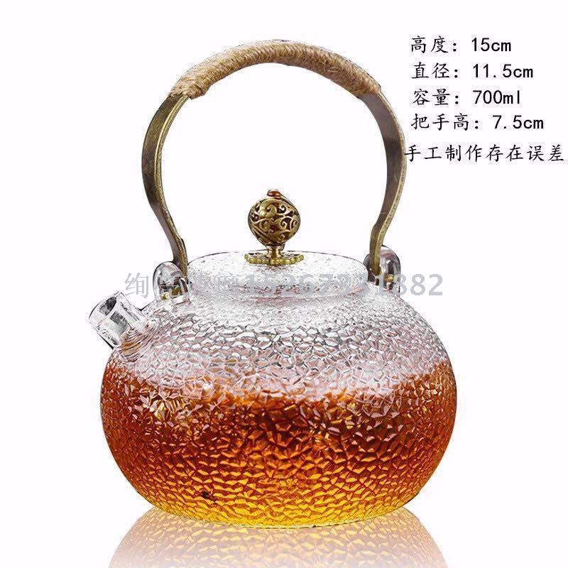 高硼硅铜把提梁壶  耐热玻璃茶壶可加热
